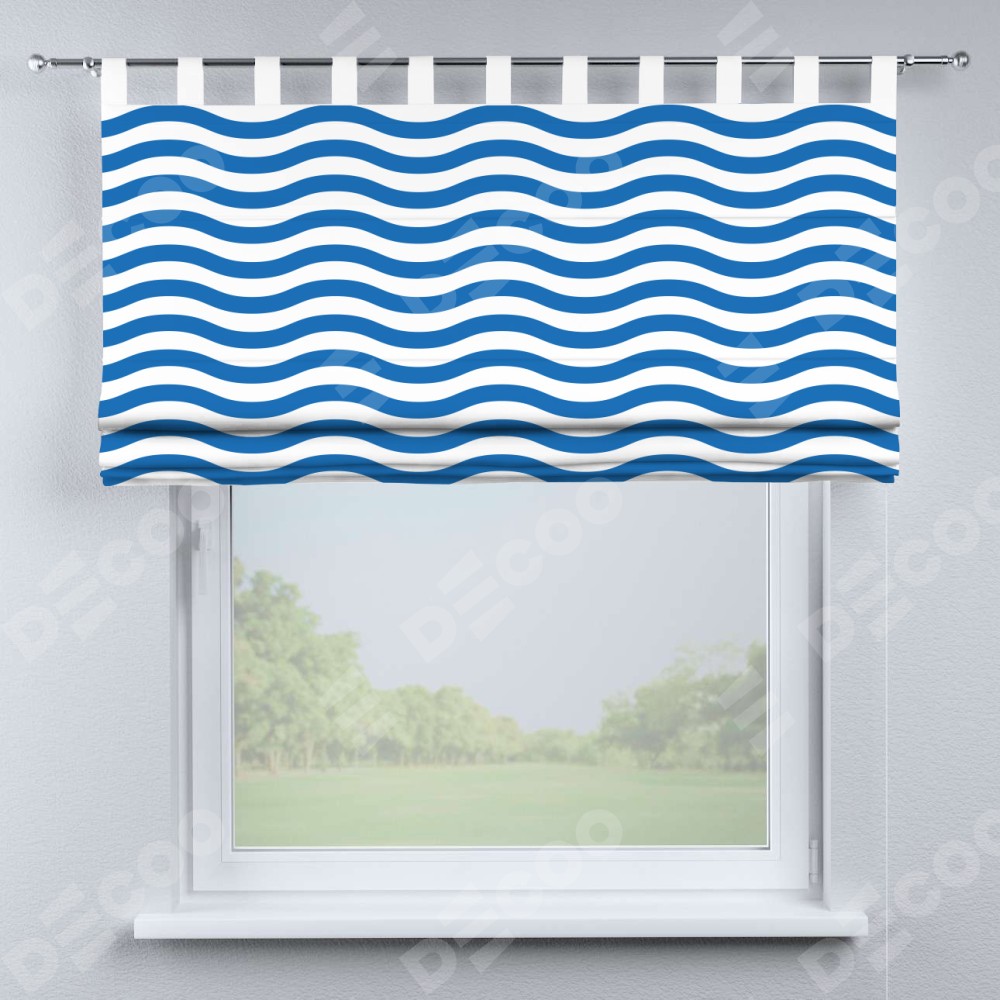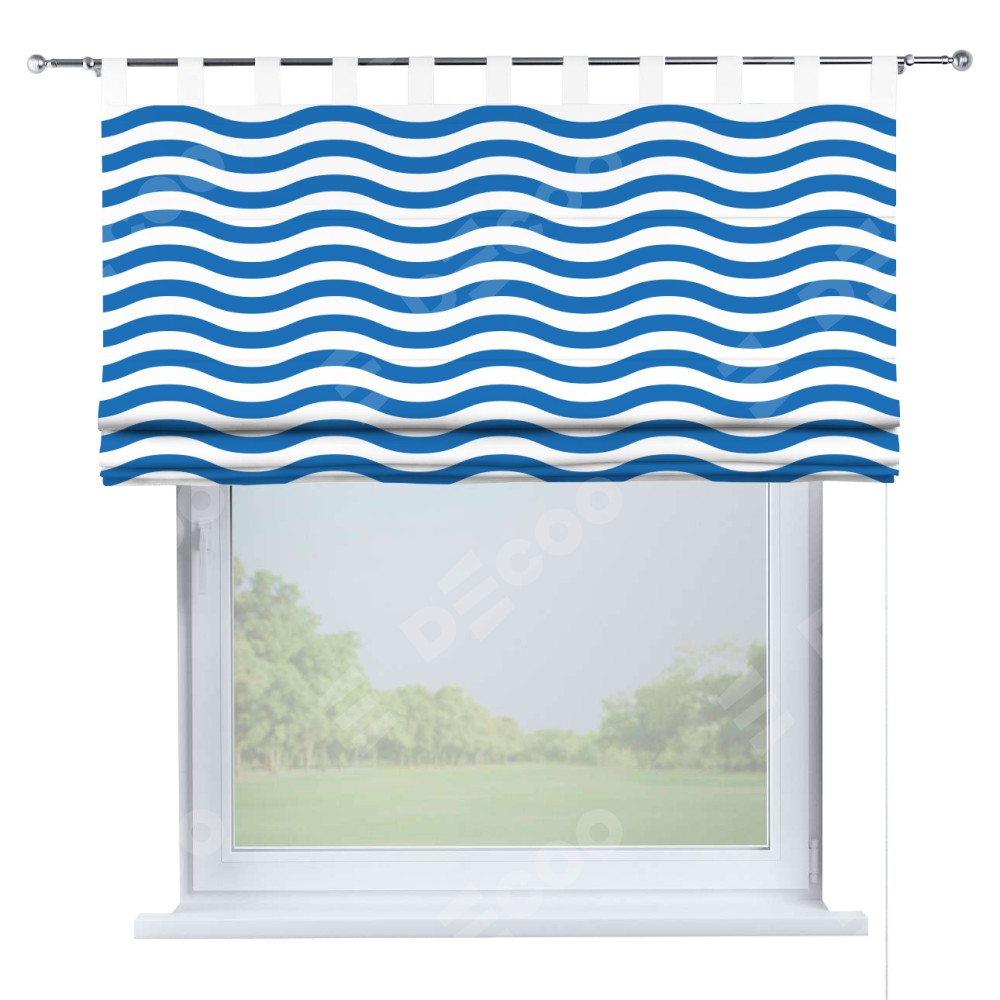 Римская штора производителя «Cortin», используется для проёма, пошита из ткани блэкаут с нанесением сублимационной печати «Волнистые линии». Данная модель пошита на петлях, комплектуется на выбор круглым карнизом и подходит для монтажа на стену. Римская штора на петлях имеет простую систему регулировки высоты, отличительным преимуществом данной модели является простой способ монтажа. Достаточно повесить ее на трубу и штора готова!