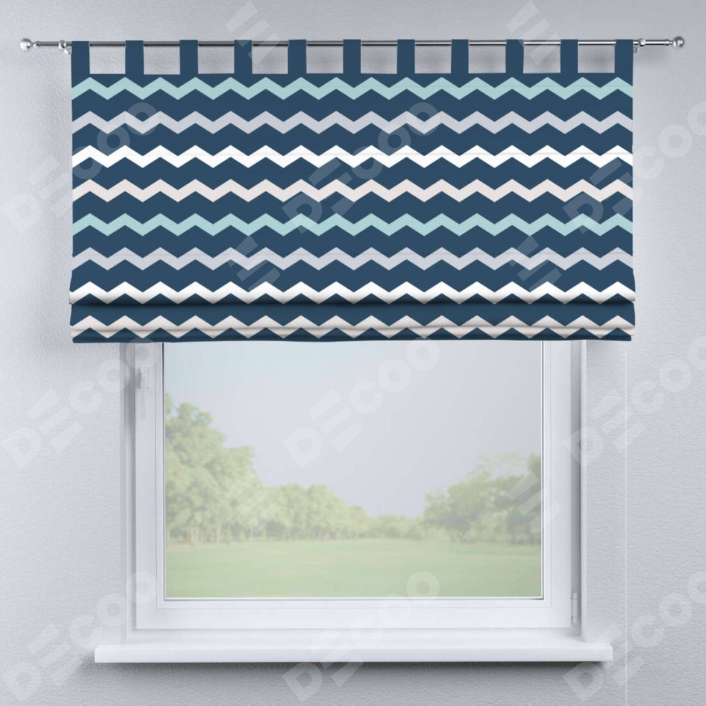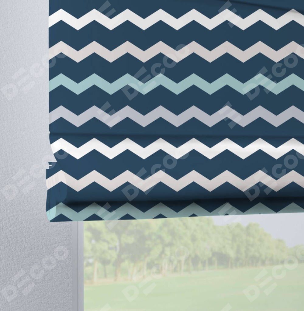 Римская штора производителя «Cortin», используется для проёма, пошита из ткани блэкаут с нанесением сублимационной печати «Морской шеврон». Данная модель пошита на петлях, комплектуется на выбор круглым карнизом и подходит для монтажа на стену. Римская штора на петлях имеет простую систему регулировки высоты, отличительным преимуществом данной модели является простой способ монтажа. Достаточно повесить ее на трубу и штора готова!