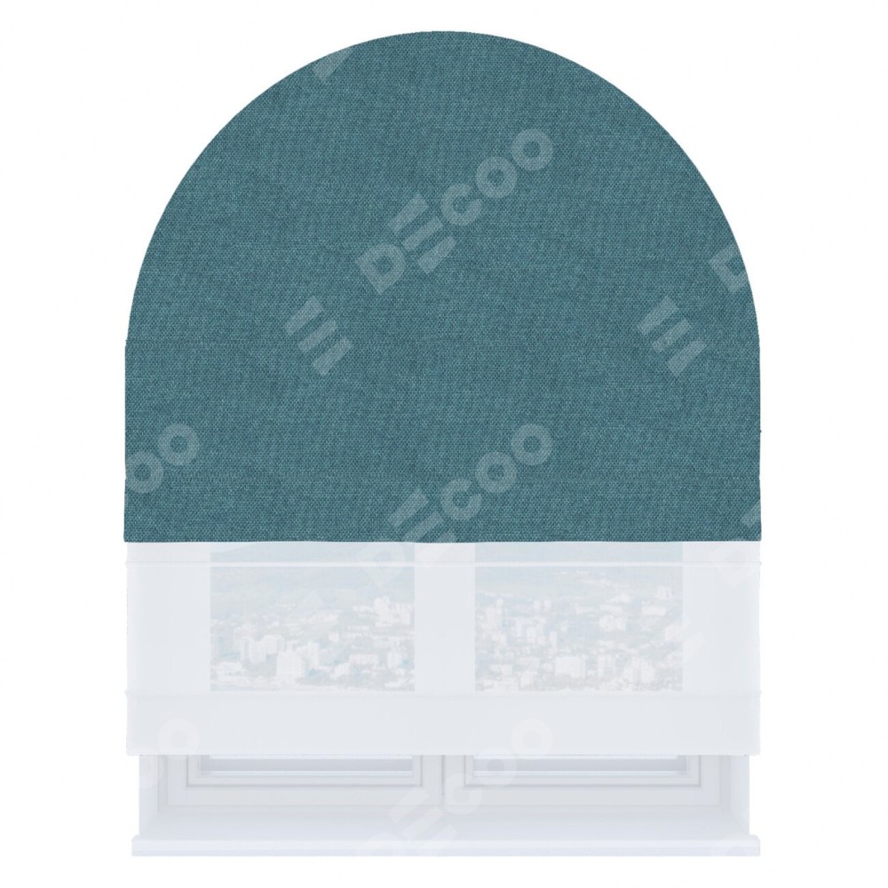 Римская штора «Кортин», лён димаут светло-синий, день-ночь для арочного проёма