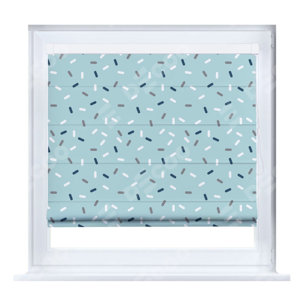 Римская штора производителя «Cortin», устанавливается на створку окна, пошита из ткани блэкаут с нанесением сублимационной печати «Короткие линии». Штора шьётся по индивидуальным размерам, для данного типа римской шторы возможная ширина от 35 до 150 см., высота до 250 см.
