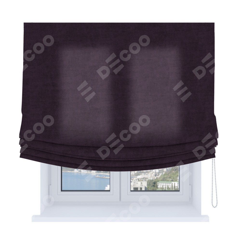 Римская штора «Кортин», вельвет тёмно-фиолетовый, Soft с мягкими складками