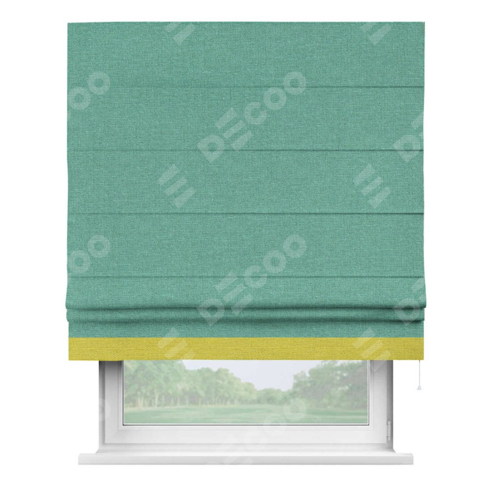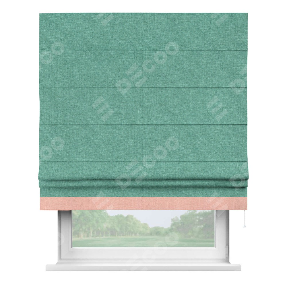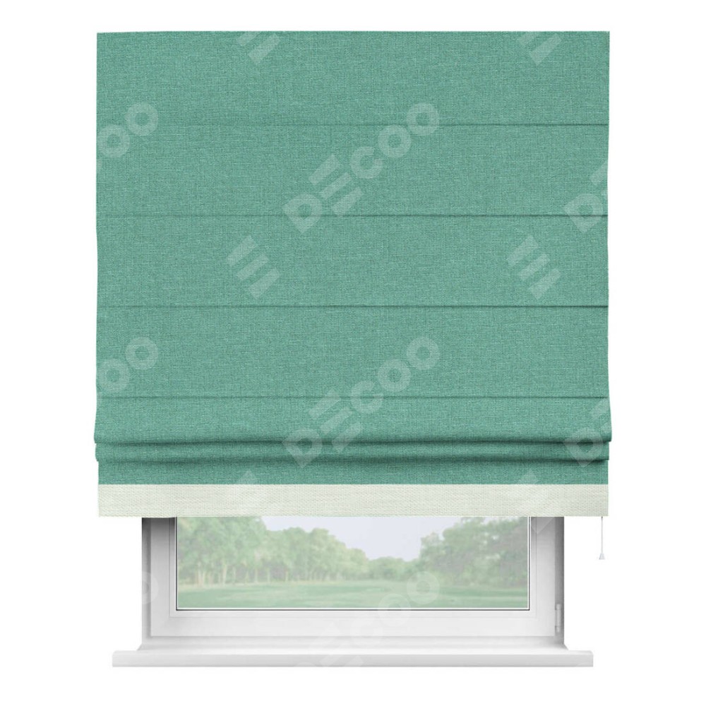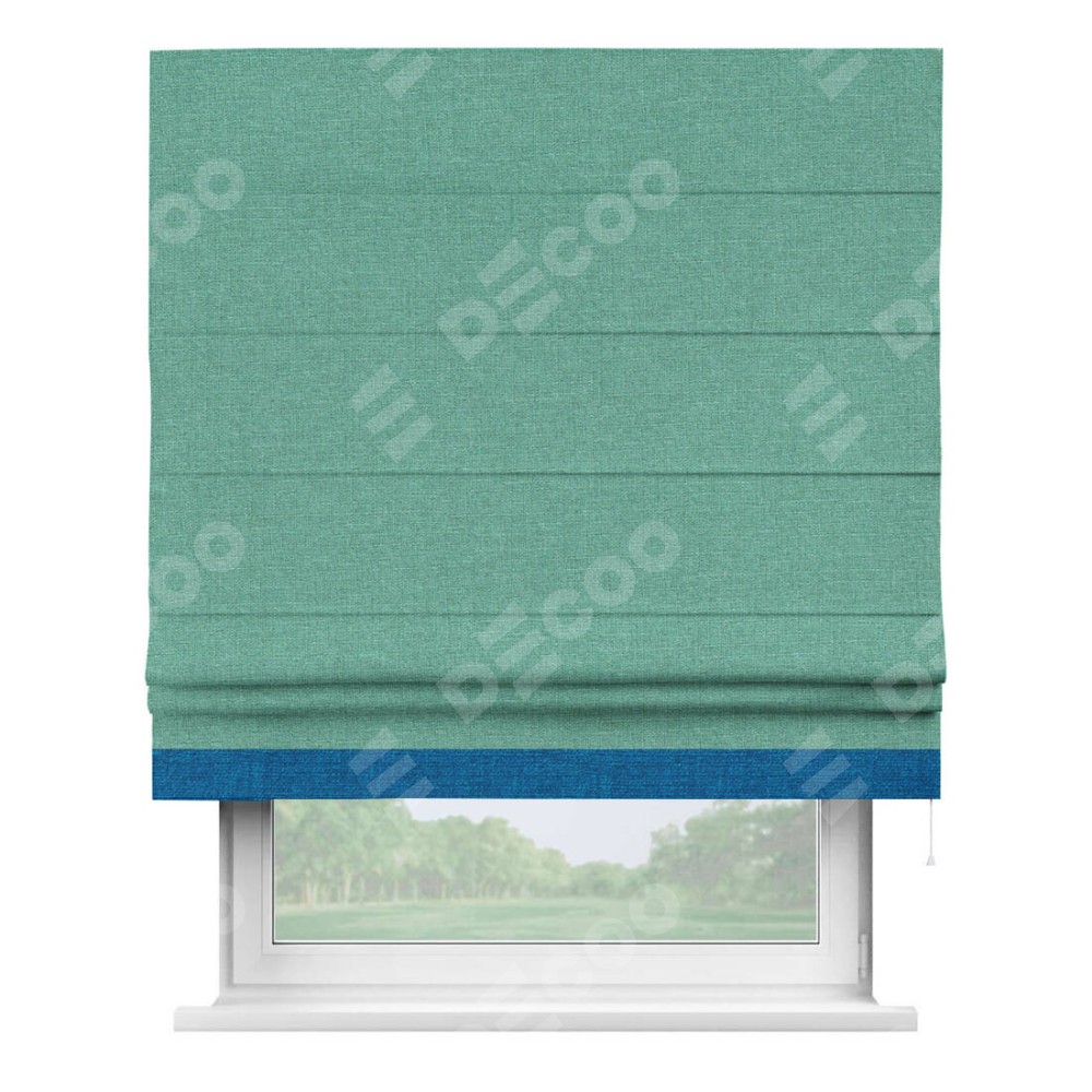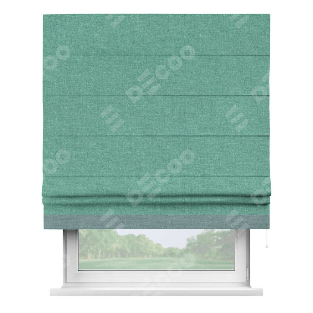 Римская штора «Кортин» с кантом Джестер, для проема, лён светло-бирюзовый