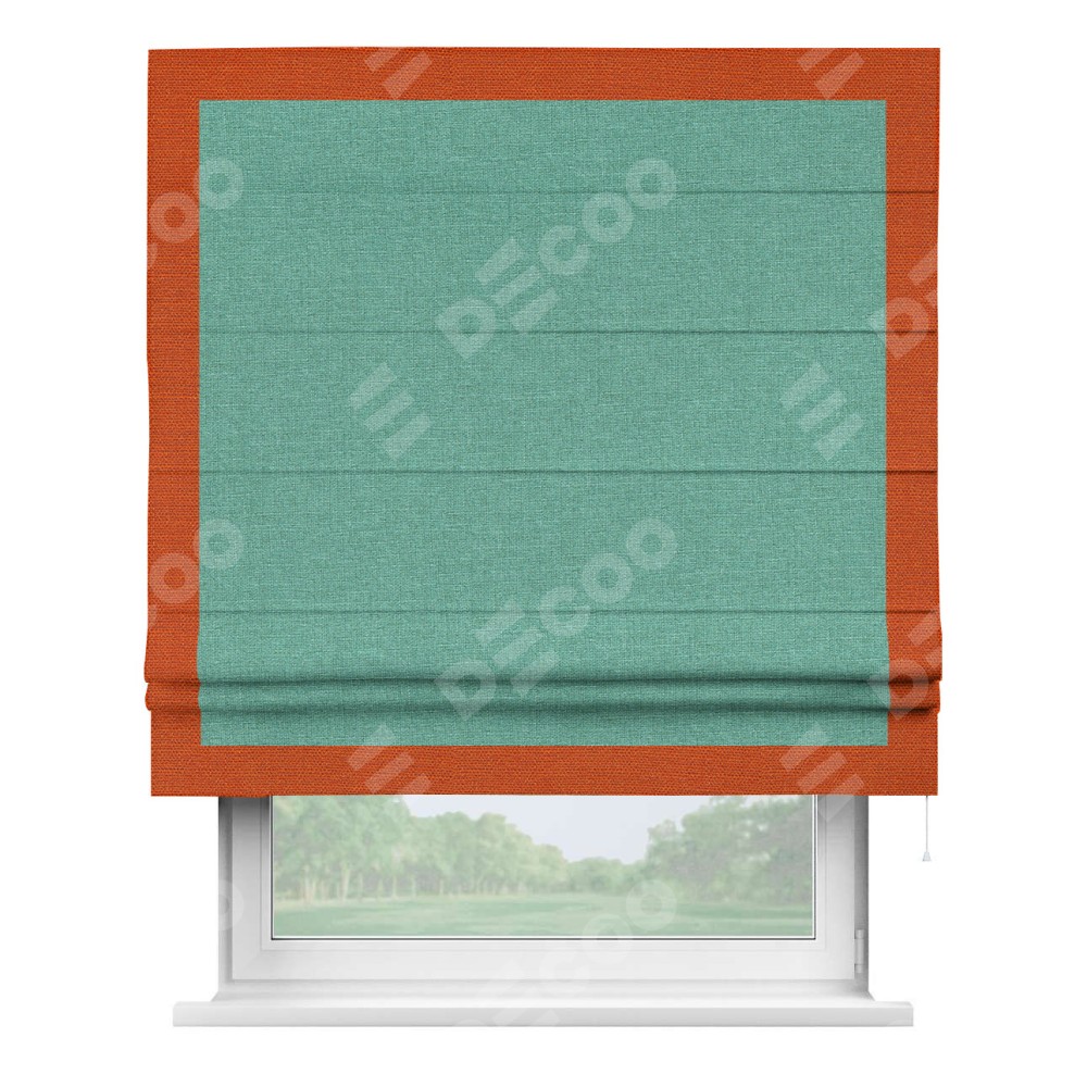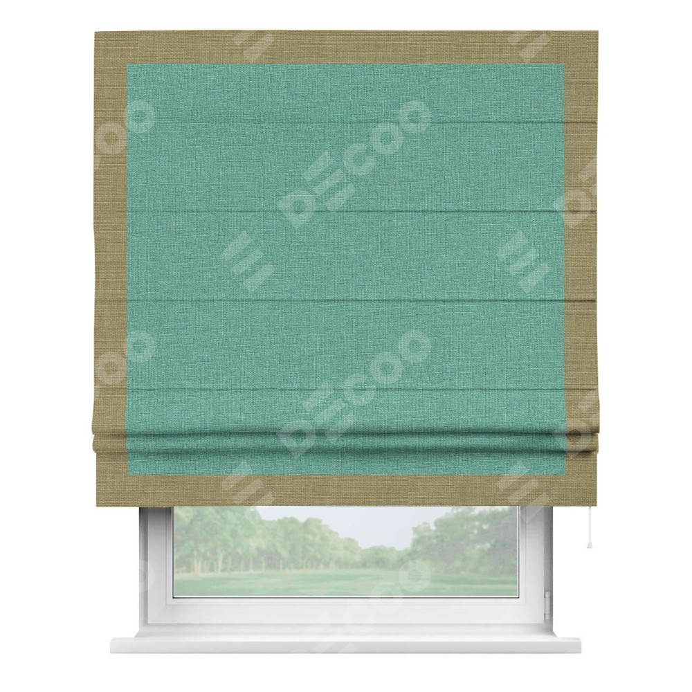 Римская штора «Кортин» с кантом Чесс, для проема, лён светло-бирюзовый