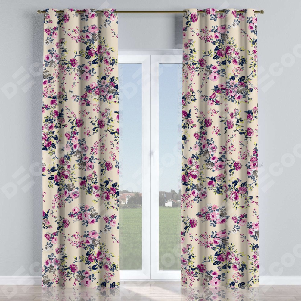 Комплект штор на люверсах «Россыпь розовых цветов» отлично подойдёт для интерьера шторы для коттеджа, шторы для холла и шторы для дома.