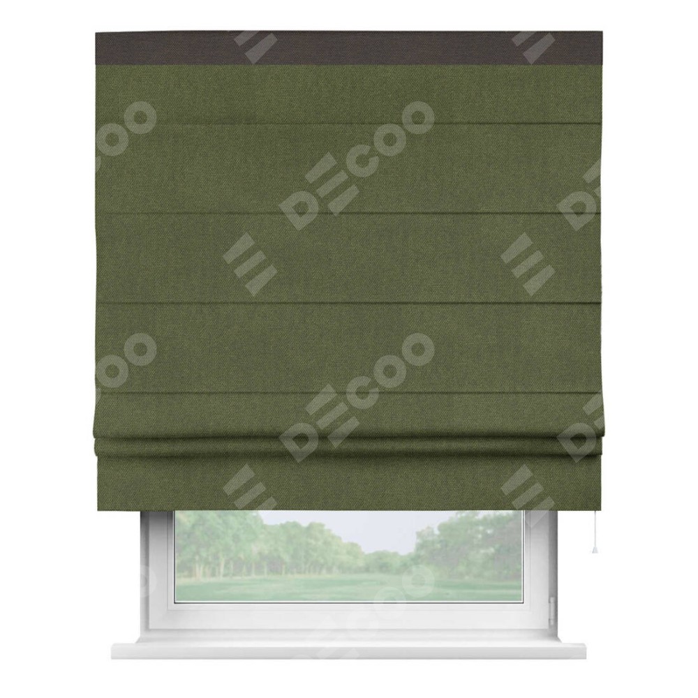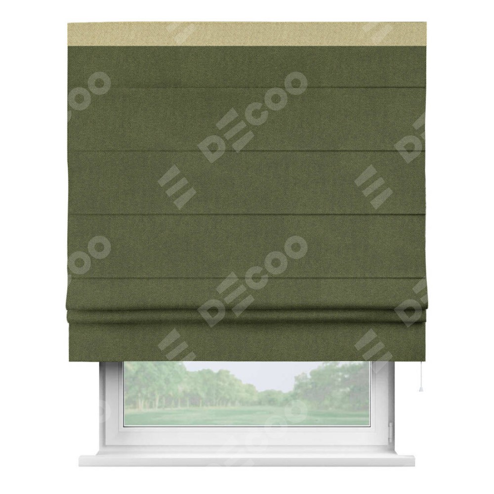 Римская штора «Кортин» для проема, лён димаут салатовый с кантом Кинг