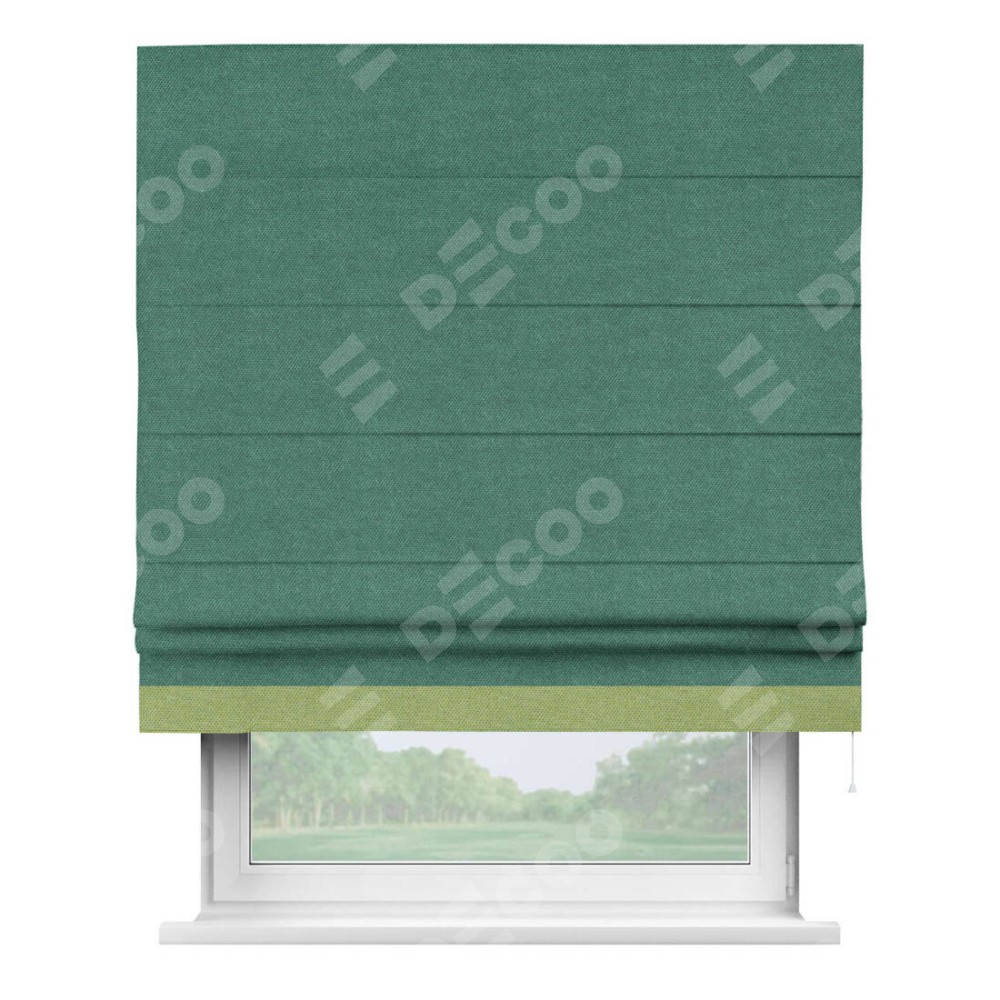 Римская штора «Кортин» для проема, лён димаут светло-бирюзовый с кантом Джестер