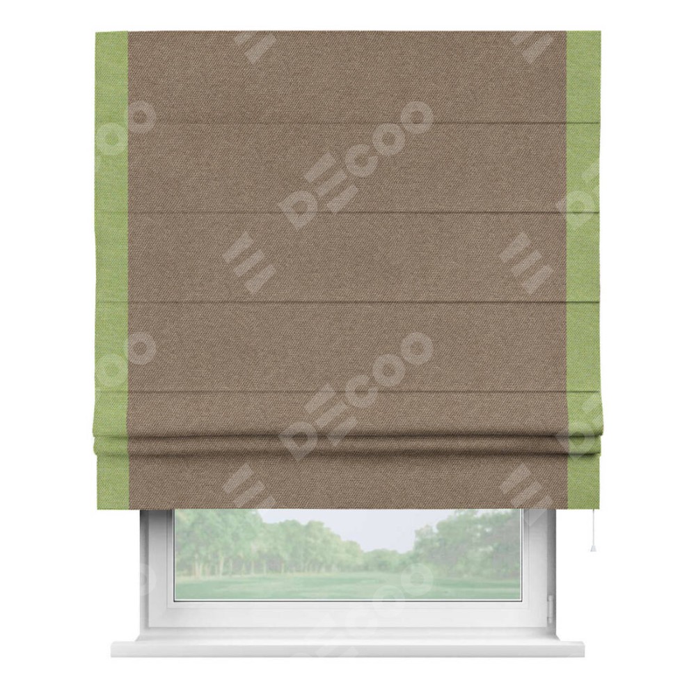Римская штора «Кортин» для проема, лён димаут коричневый с кантом Стрим Дуо