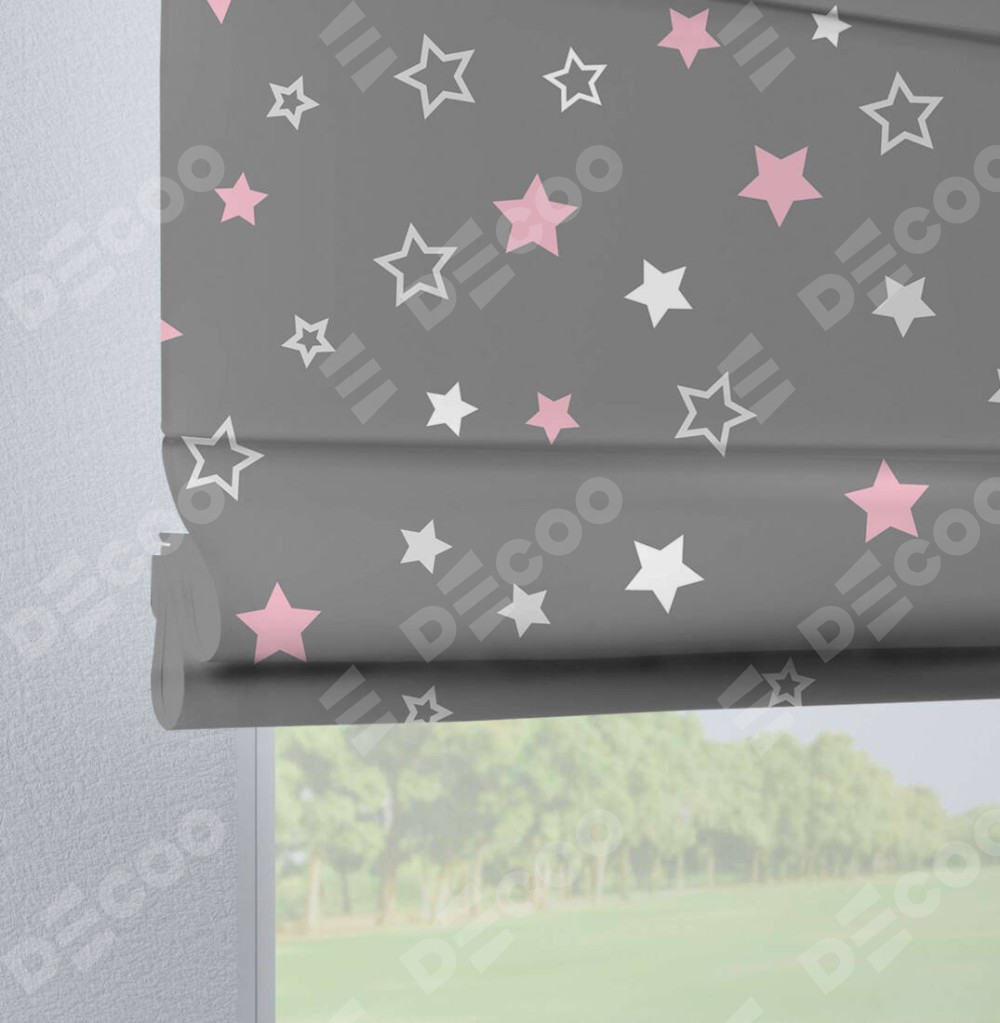 Римская штора на петлях «Розовый звездопад» отлично подойдёт для интерьера: в детскую.