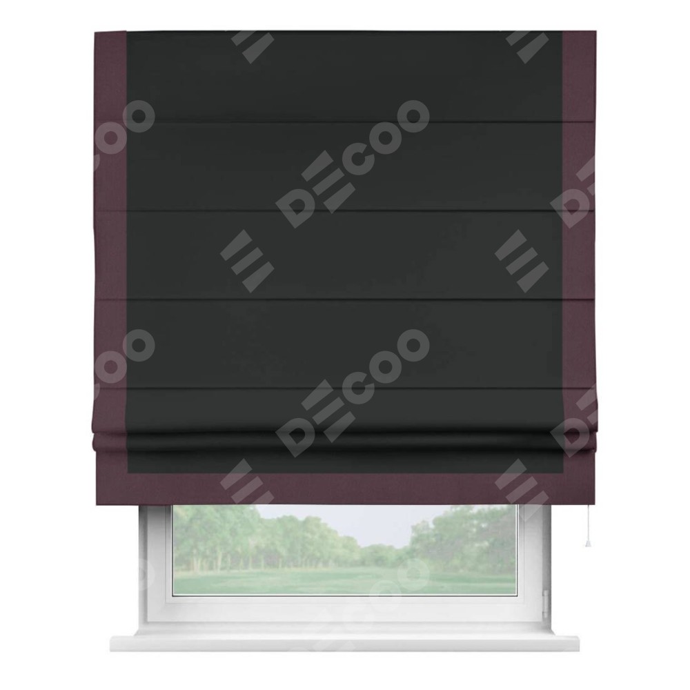 Римская штора «Кортин» для проема, блэкаут однотонный черный с кантом Виктория