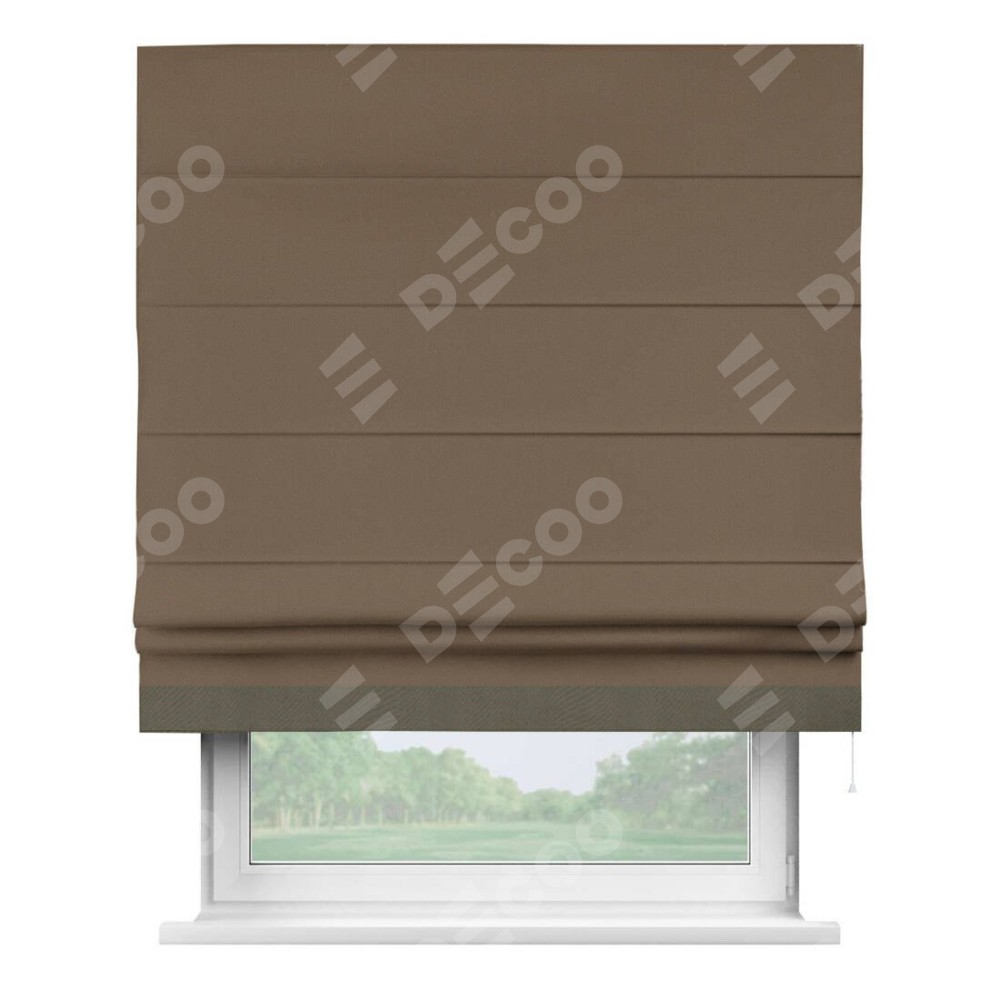 Римская штора «Кортин» для проема, блэкаут однотонный коричневый с кантом Джестер
