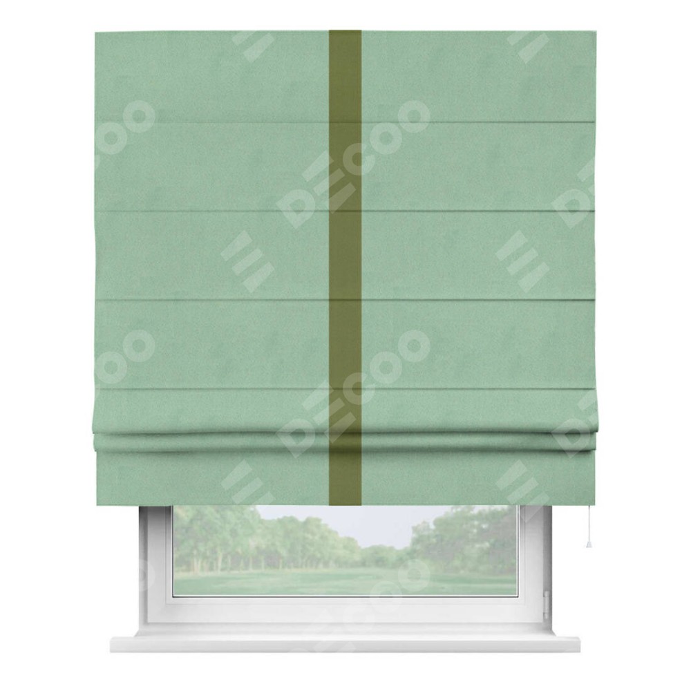 Римская штора «Кортин» для проема, блэкаут однотонный ментоловый с кантом Хайвэй