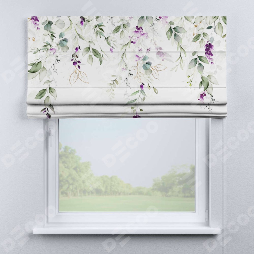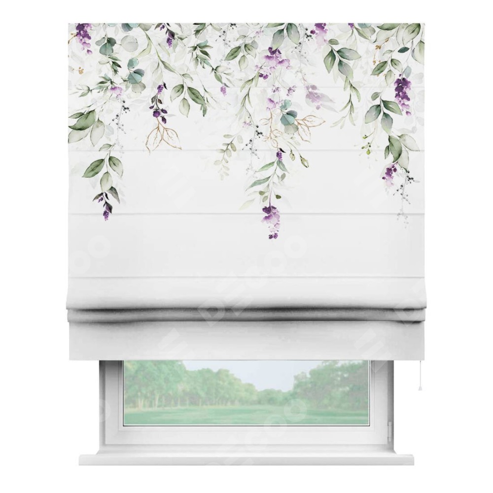 Римская штора «Кортин» для проема «Цветочный водопад» отлично подойдёт для интерьера: в кухню, на балкон и в гостиную.