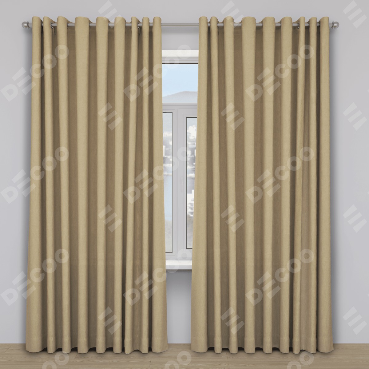 Шторы на люверсах ткань лён димаут, тёмно-бежевый