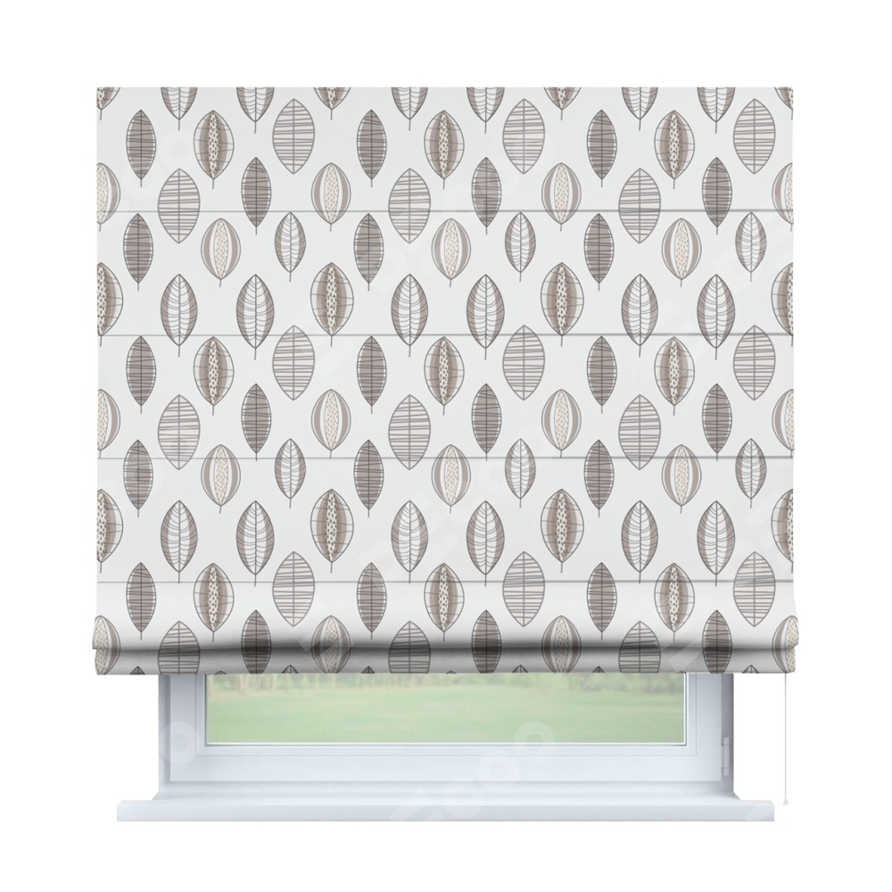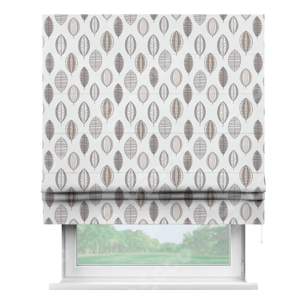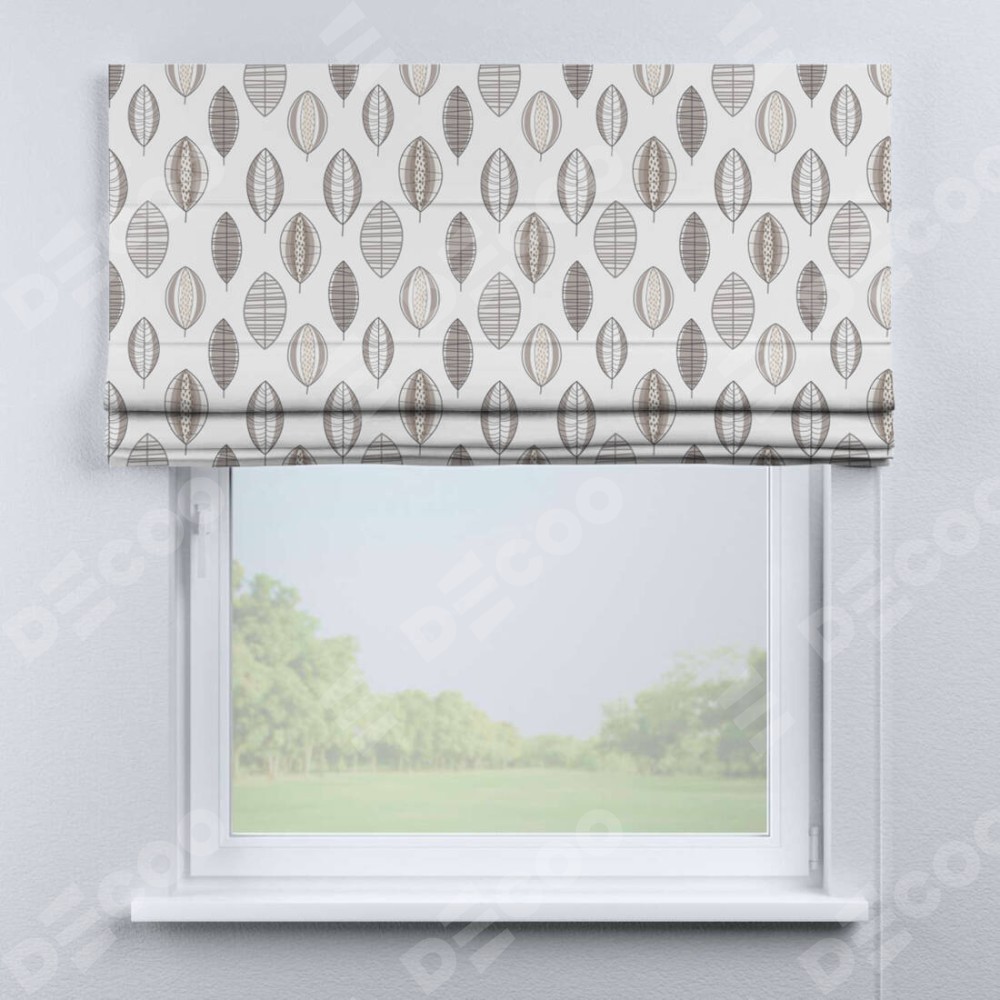Классическая римская штора производителя «Cortin», пошита из ткани блэкаут с нанесением сублимационной печати «Кофейные листья». Имеет универсальный механизм и подходит для монтажа: на потолок, на стену и в нишу.