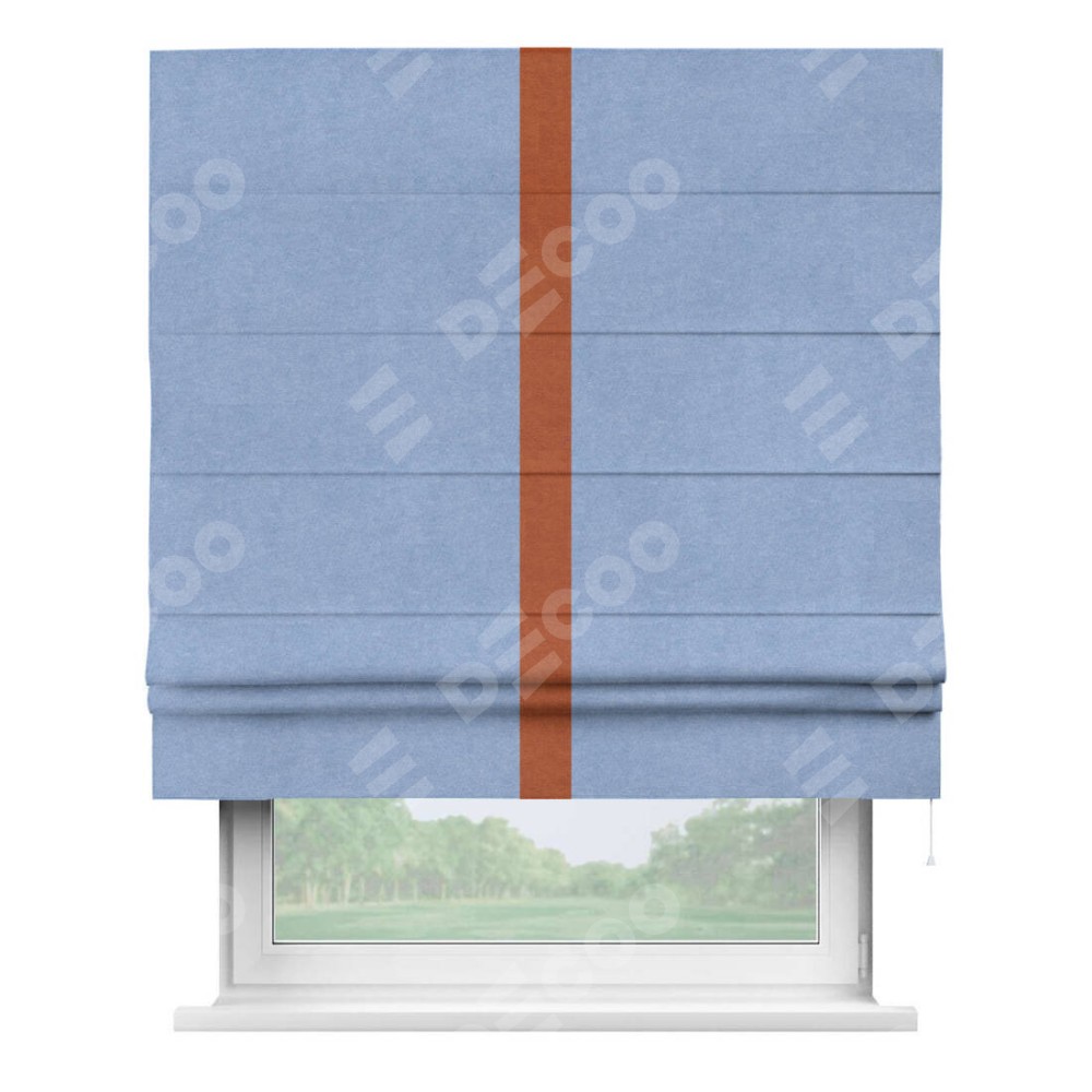 Римская штора «Кортин» для проема, вельвет васильковый с кантом Хайвэй