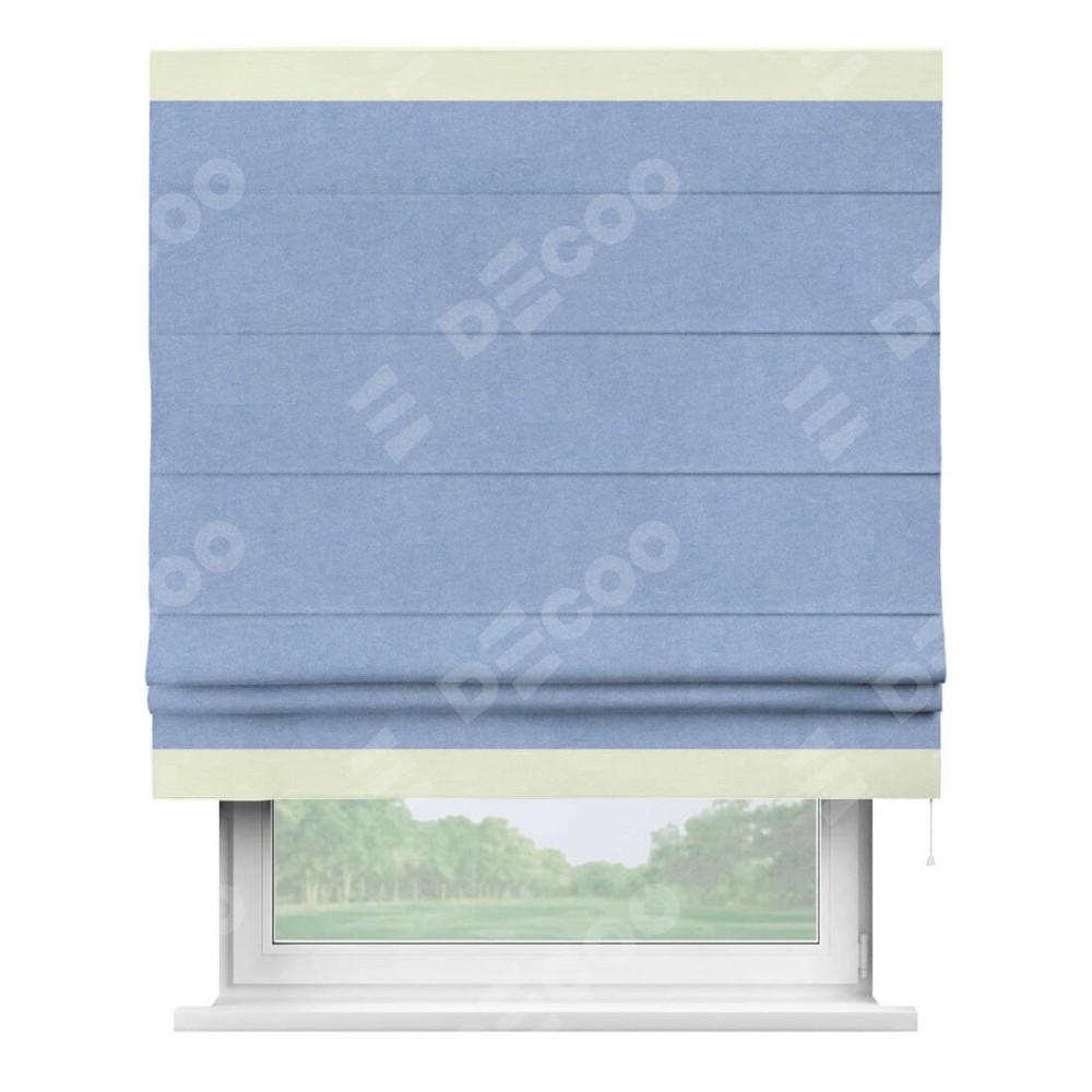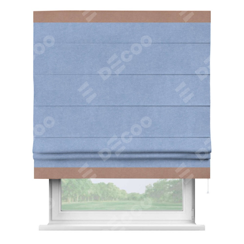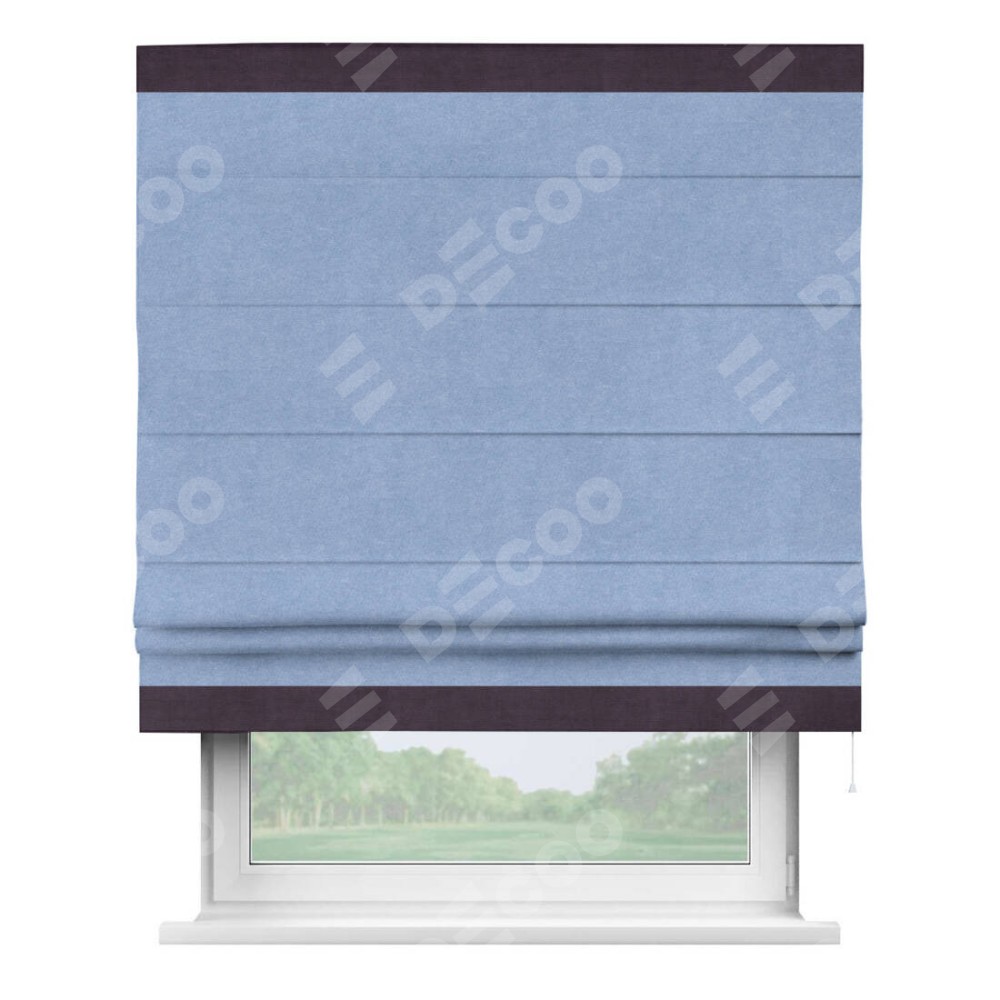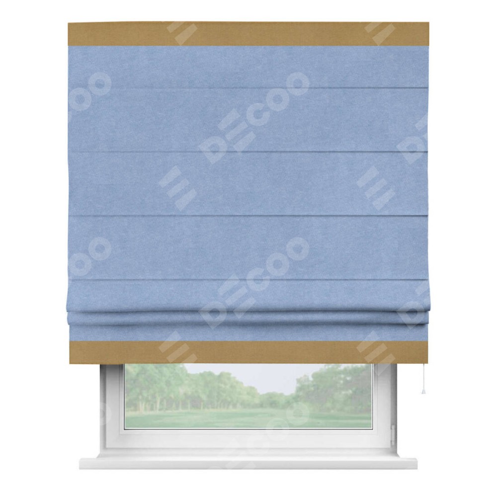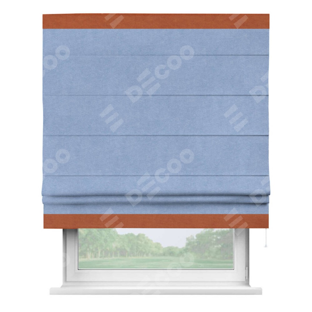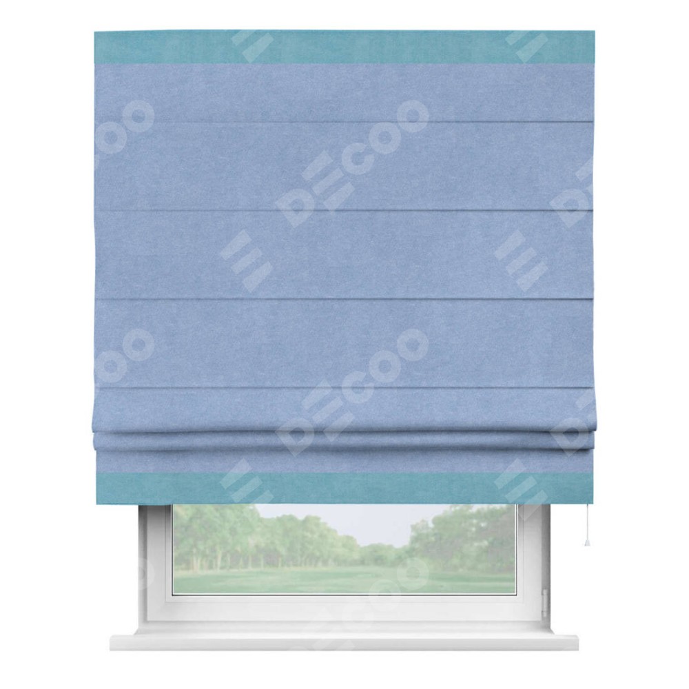 Римская штора «Кортин» для проема, вельвет васильковый с кантом Горизонт