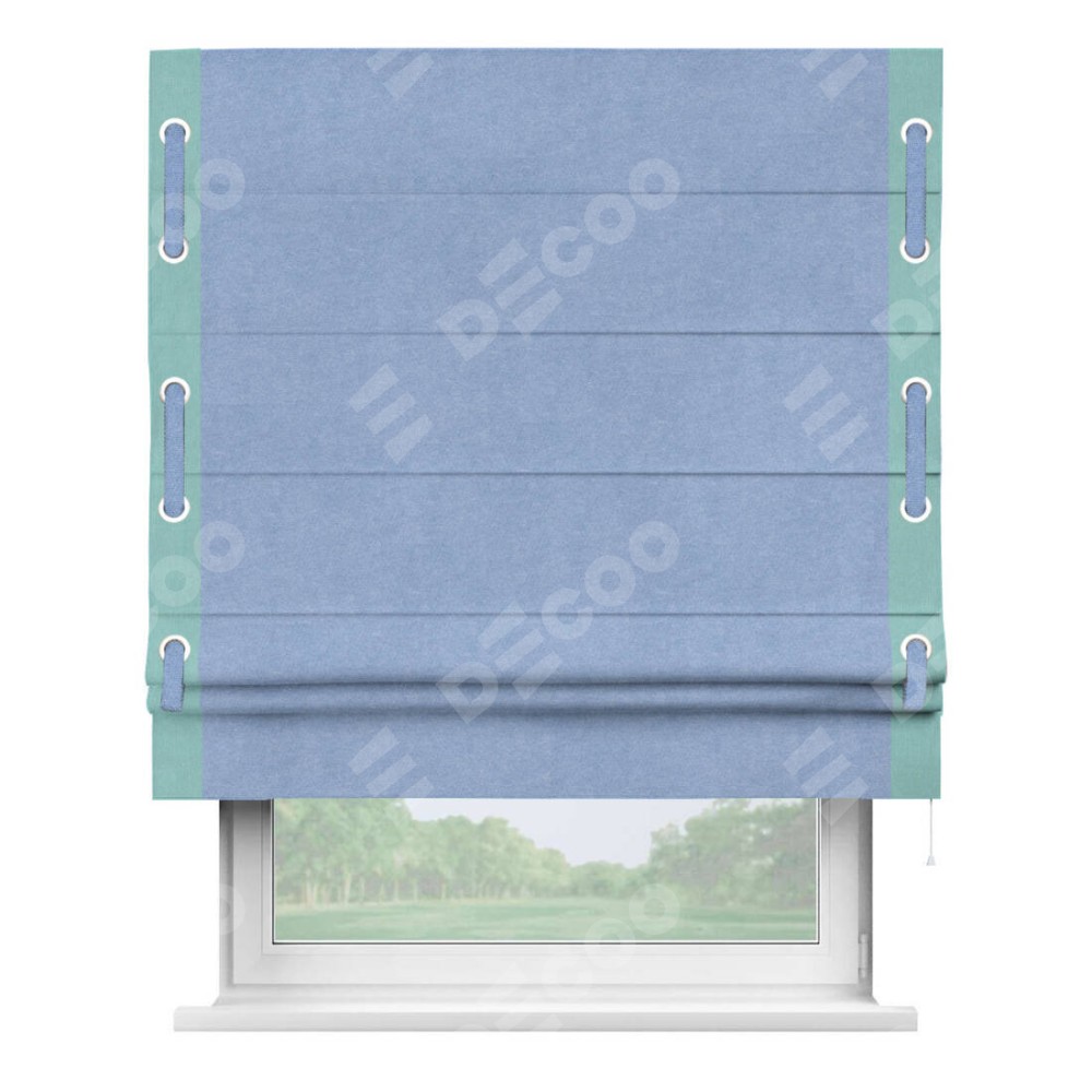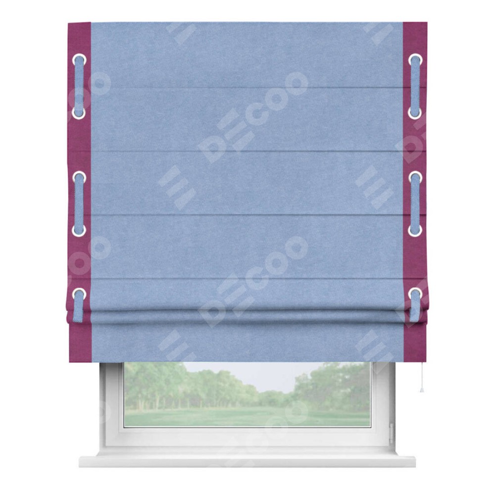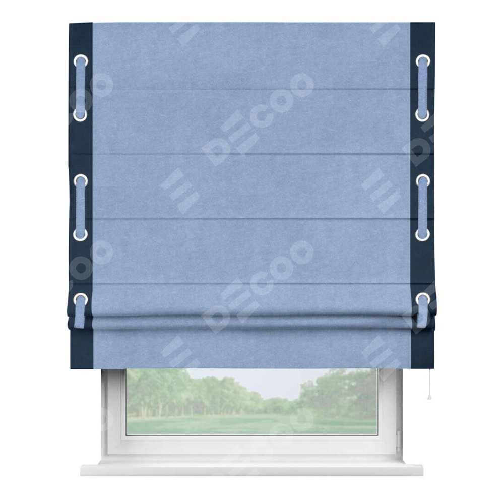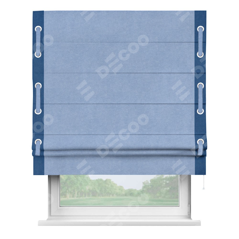 Римская штора «Кортин» для проема, вельвет васильковый с кантом Стрим Дуо (люверсы с пояском)