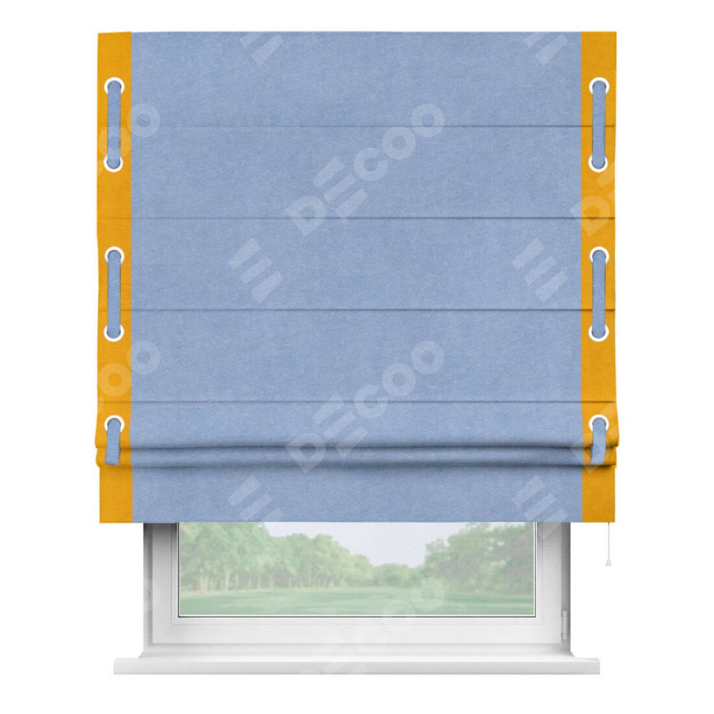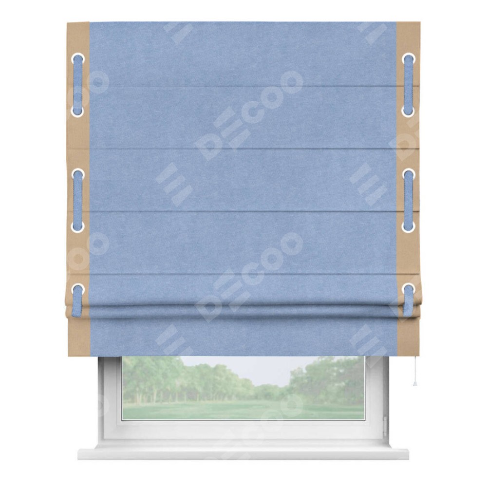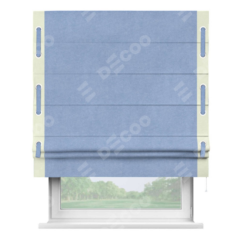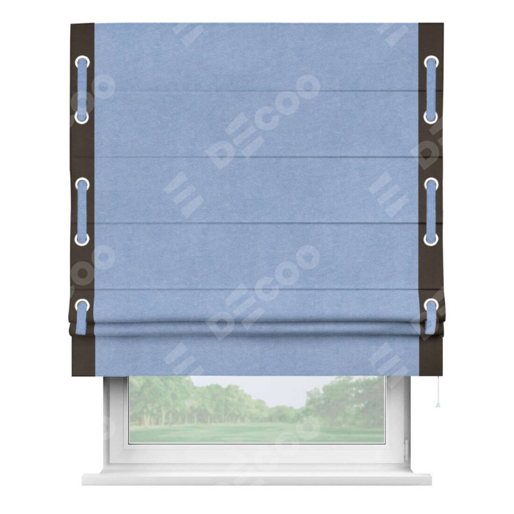 Римская штора «Кортин» для проема, вельвет васильковый с кантом Стрим Дуо (люверсы с пояском)