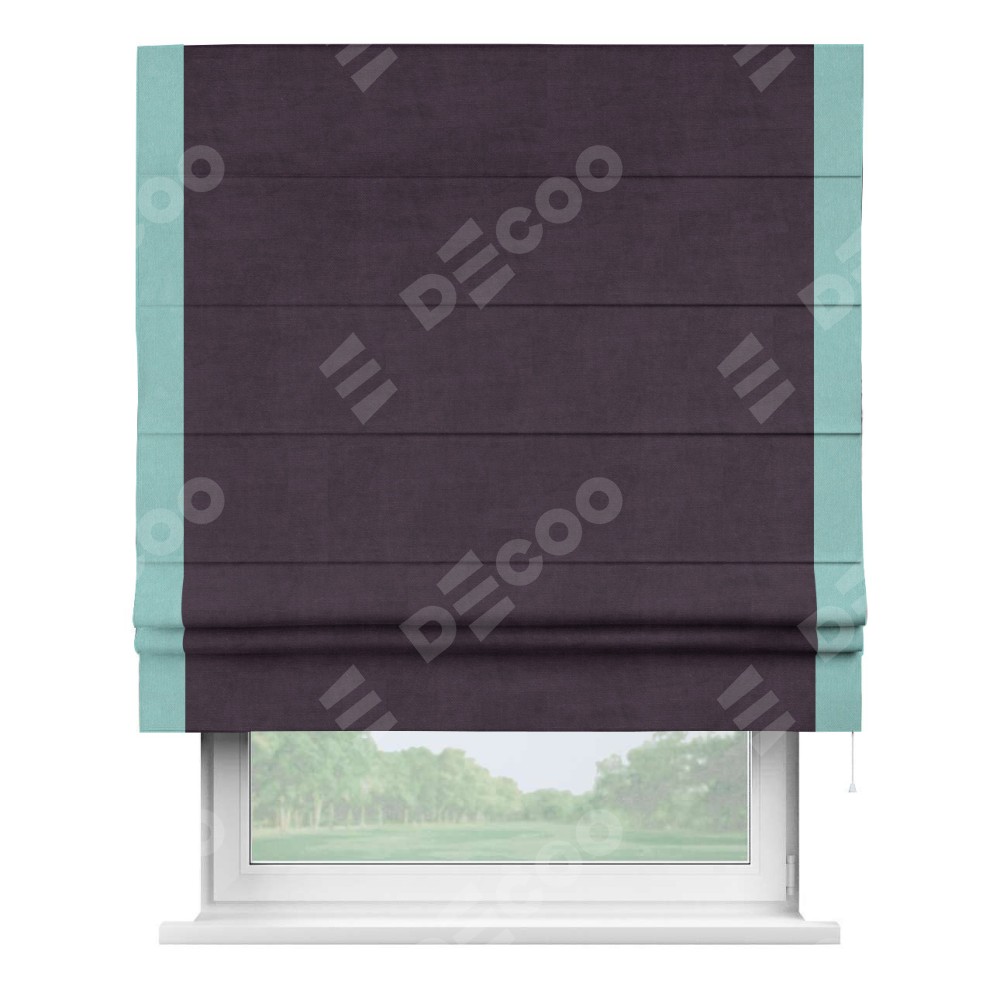 Римская штора «Кортин» для проема, вельвет тёмно-фиолетовый с кантом Стрим Дуо