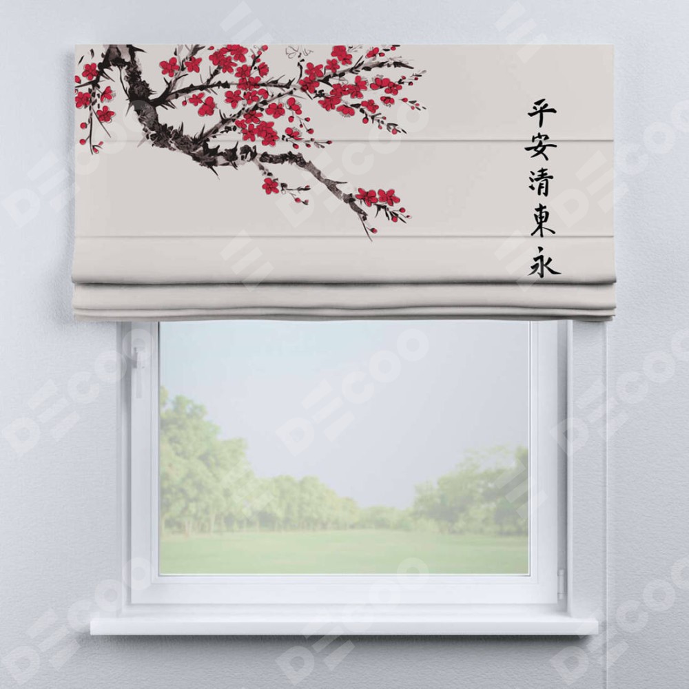 Классическая римская штора производителя «Cortin», пошита из ткани блэкаут с нанесением сублимационной печати «Цветущая сакура». Имеет универсальный механизм и подходит для монтажа: на потолок, на стену и в нишу.