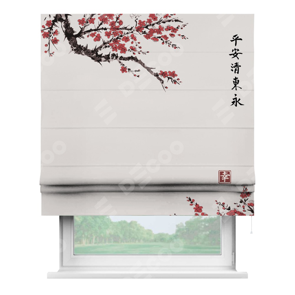Римская штора «Кортин» для проема «Цветущая сакура»