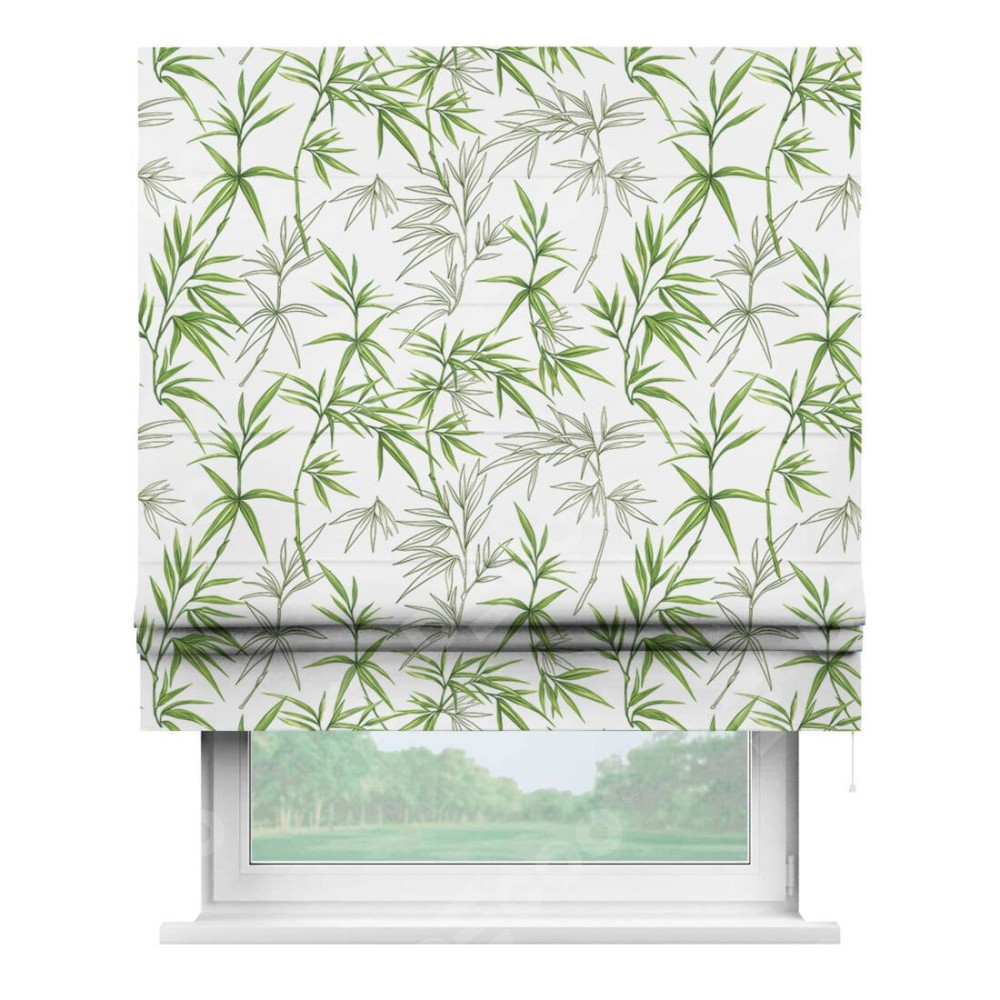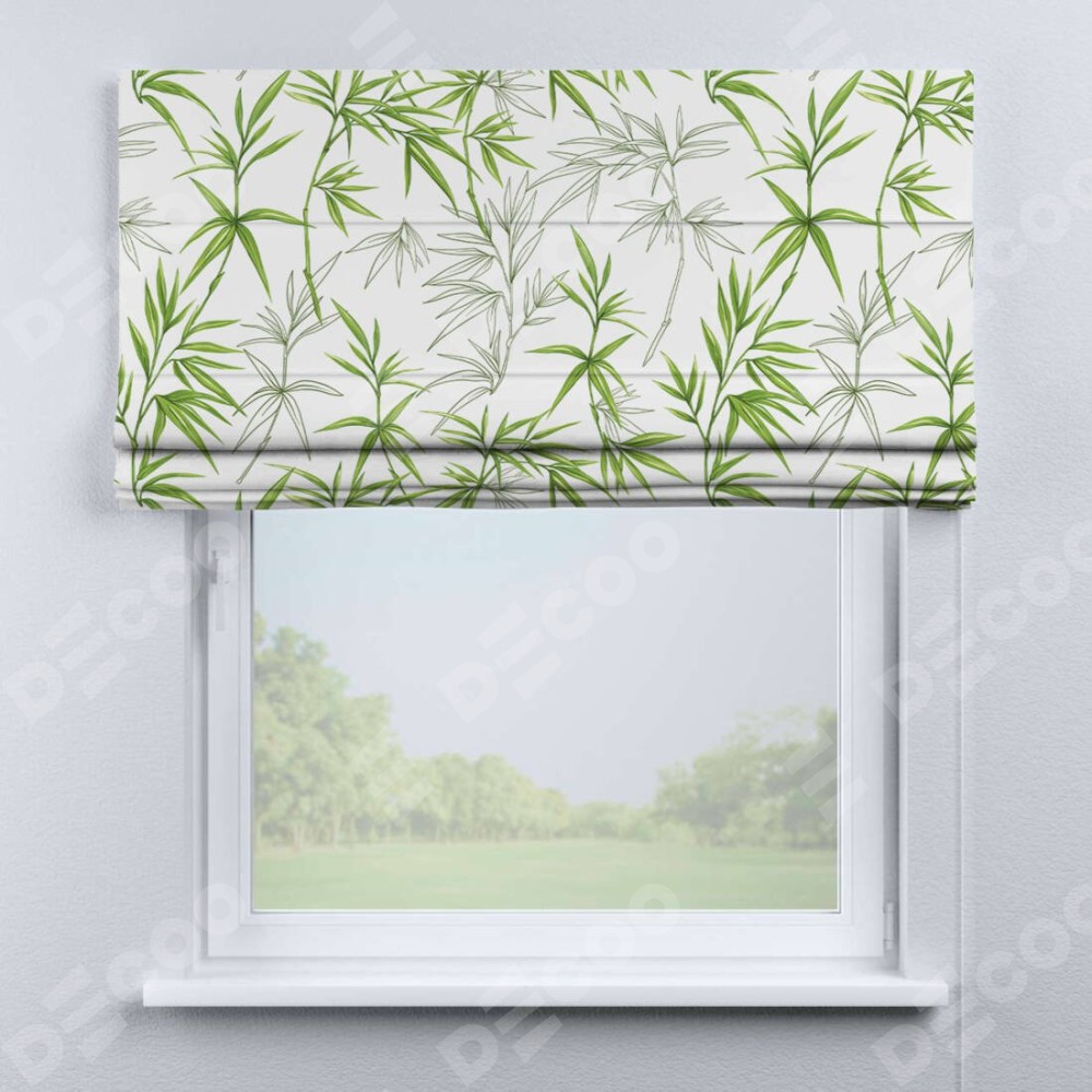 Римская штора «Кортин» для проема «Зелёный бамбук» отлично подойдёт для интерьера: подростку в комнату, на балкон и в кухню.