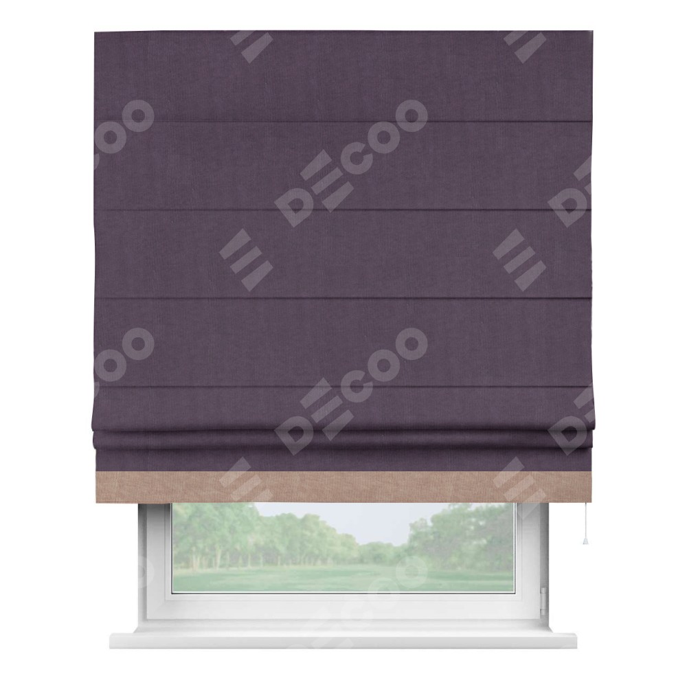 Римская штора «Кортин» для проема, канвас баклажановый, с кантом Джестер