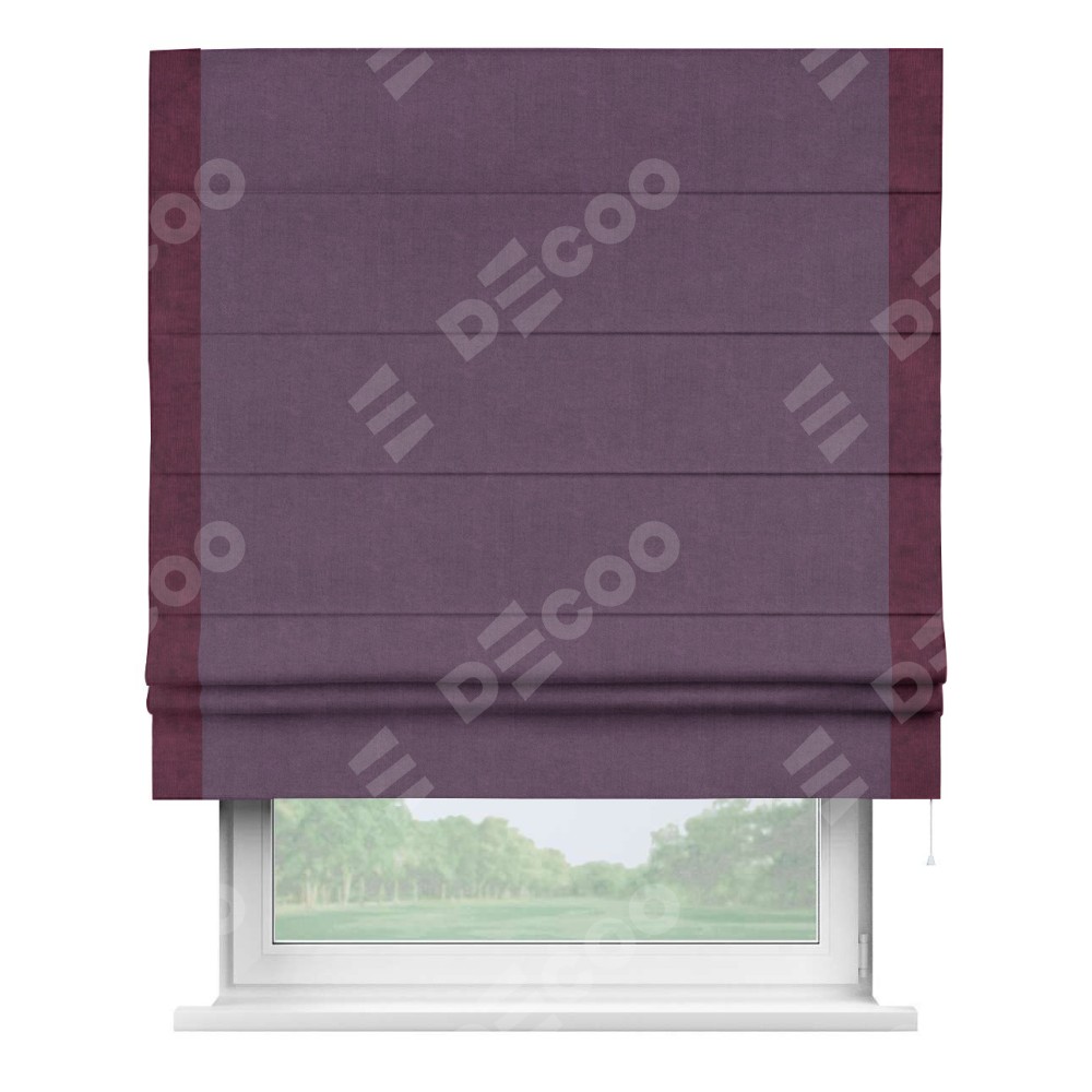 Римская штора «Кортин» для проема, канвас сиреневый, с кантом Стрим Дуо