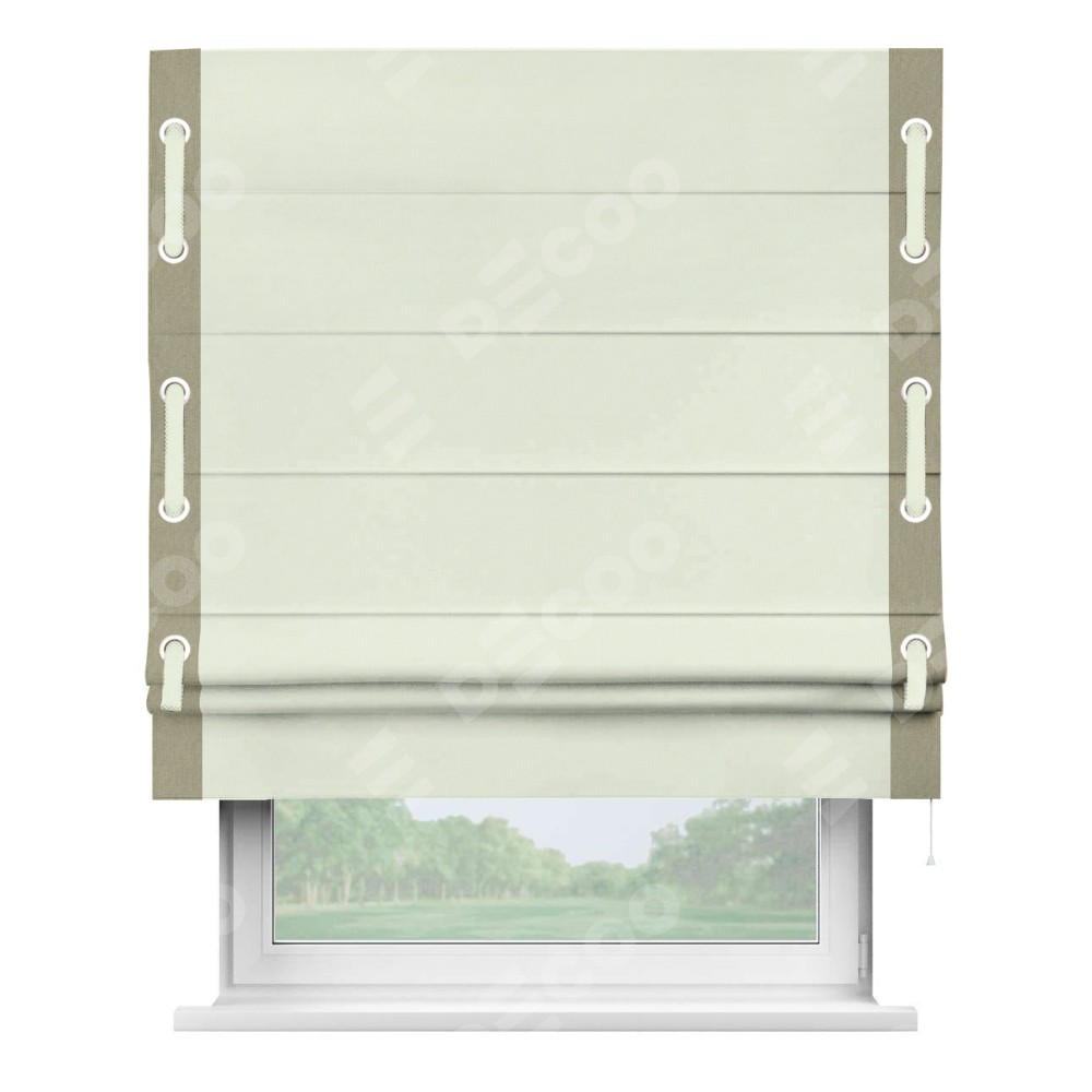 Римская штора «Кортин» для проема, канвас сливочный, с кантом Стрим Дуо (люверсы с пояском)