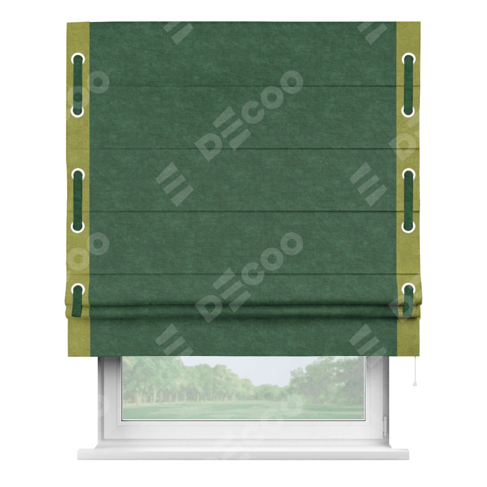 Римская штора «Кортин» для проема, канвас тёмно-зелёный, с кантом Стрим Дуо (люверсы с пояском)