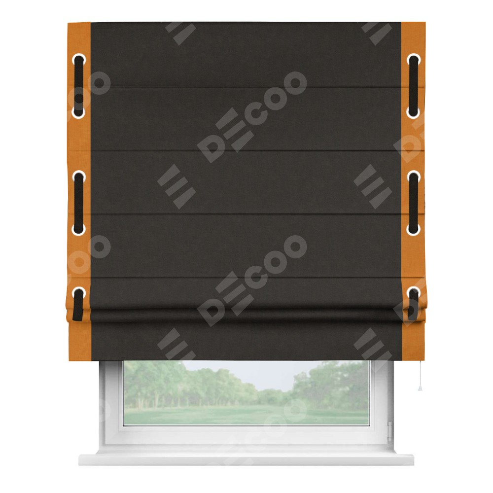Римская штора «Кортин» для проема, канвас тёмно-коричневый, с кантом Стрим Дуо (люверсы с пояском)