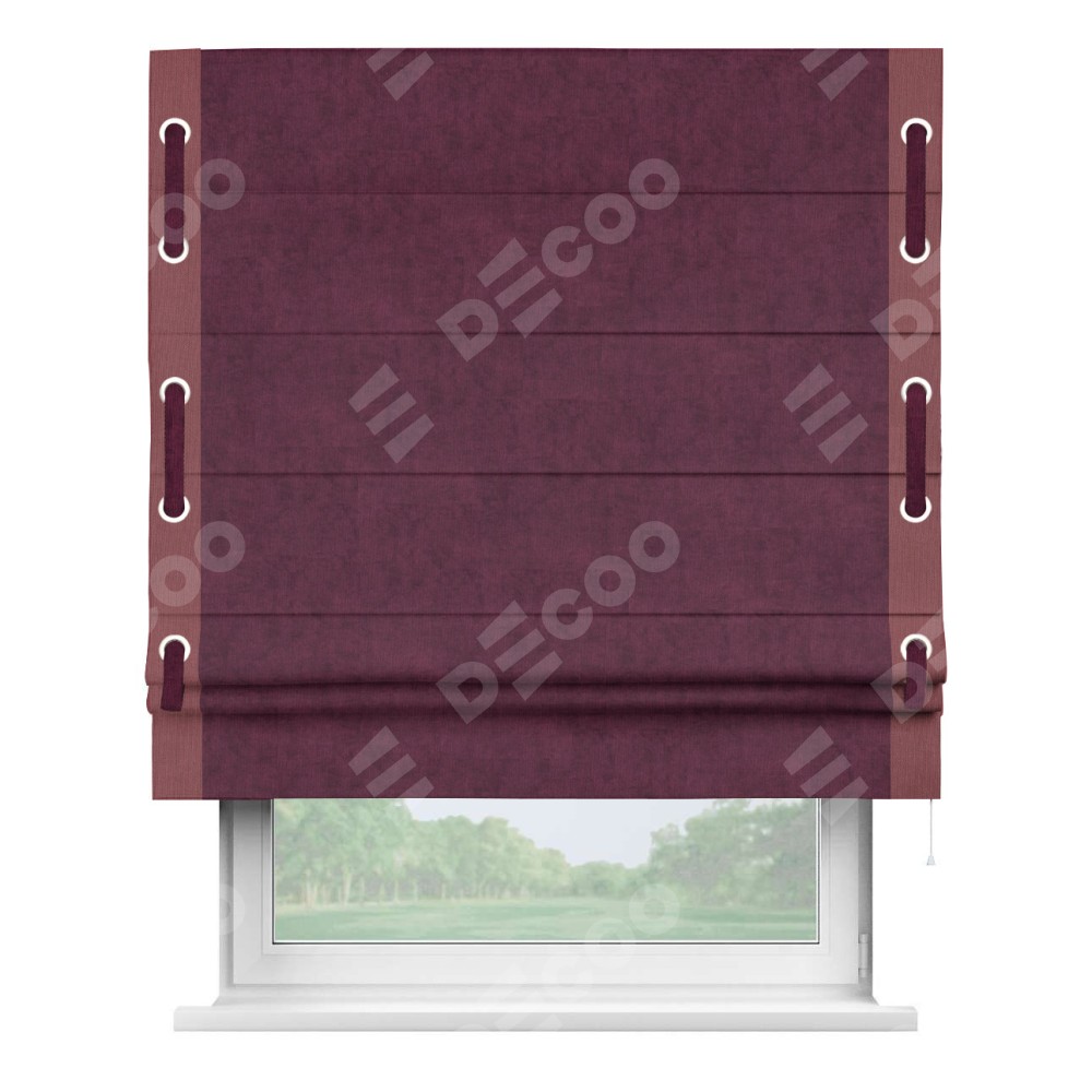 Римская штора «Кортин» для проема, канвас фиолетовый, с кантом Стрим Дуо (люверсы с пояском)