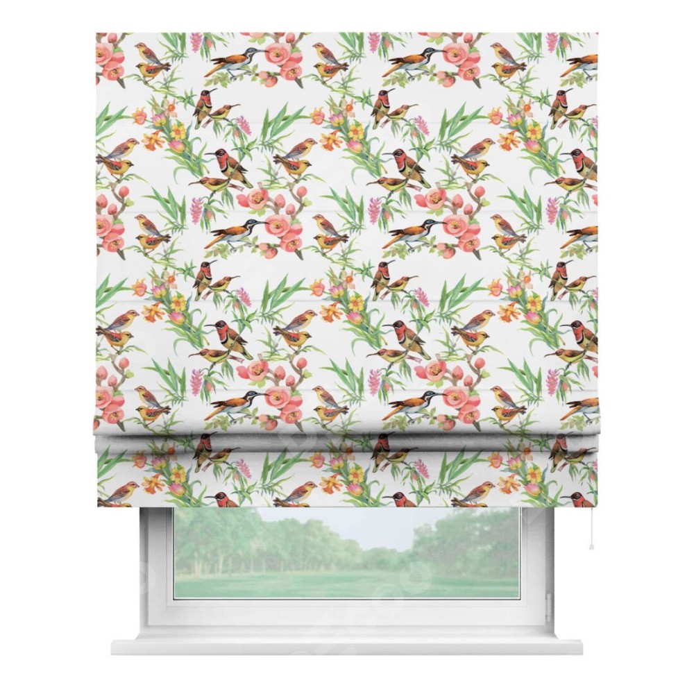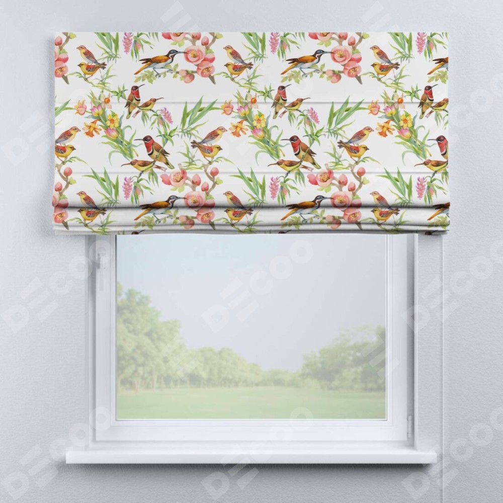 Римская штора «Кортин» для проема «Певчие птички» отлично подойдёт для интерьера: в кухню, на балкон и в спальню.