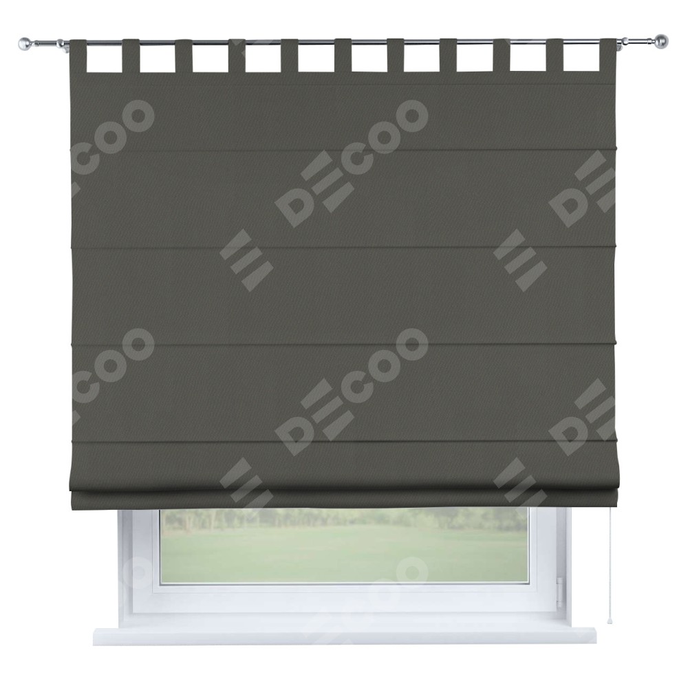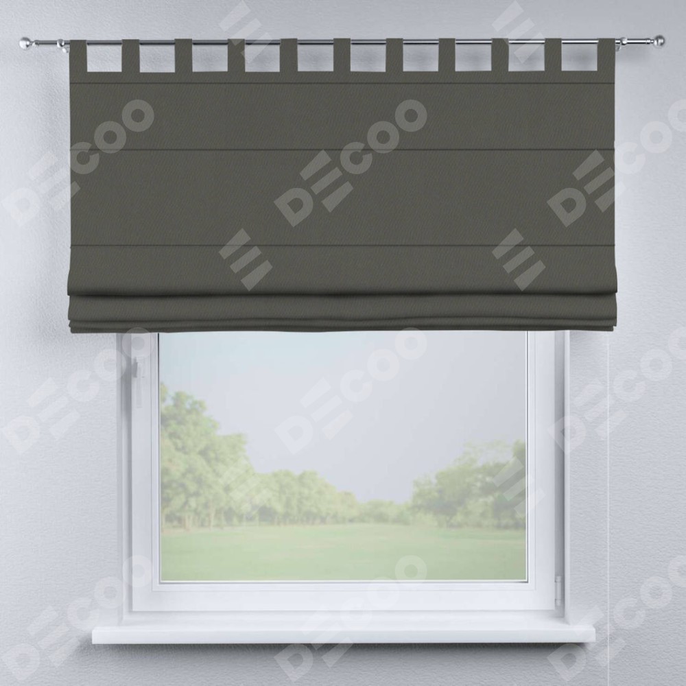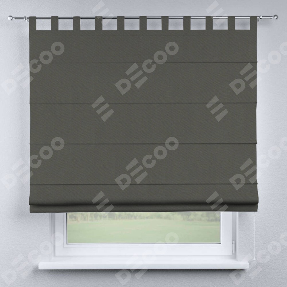 Римская штора производителя «Cortin», используется для проёма, пошита из ткани блэкаут однотонный тёмно-серый, артикул ткани 91570. Данная модель пошита на петлях, комплектуется на выбор круглым карнизом и подходит для монтажа на стену. Римская штора на петлях имеет простую систему регулировки высоты, отличительным преимуществом данной модели является простой способ монтажа. Достаточно повесить ее на трубу и штора готова!