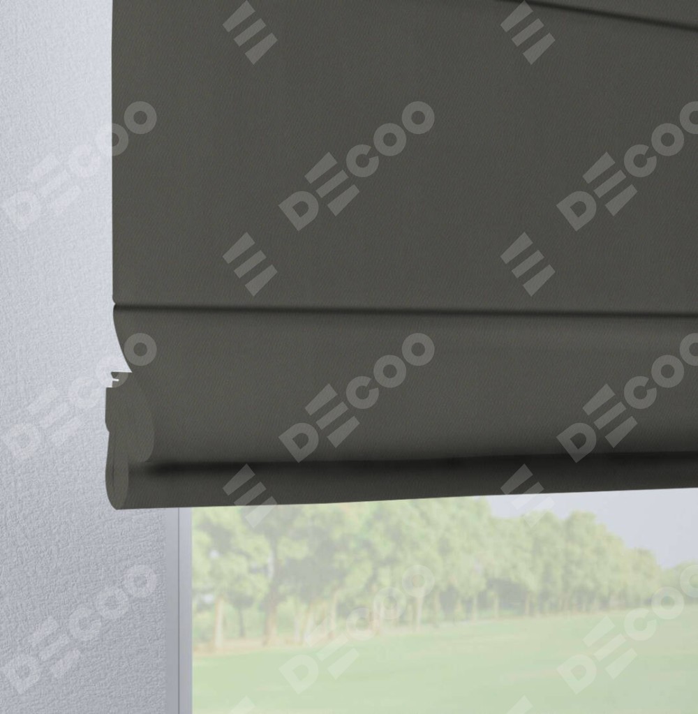 Римская штора «Кортин», блэкаут однотонный тёмно-серый, на петлях