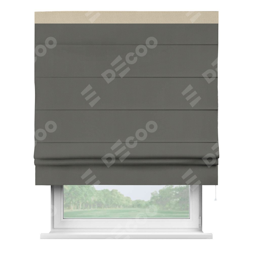 Римская штора «Кортин» для проема, блэкаут однотонный тёмно-серый с кантом Кинг