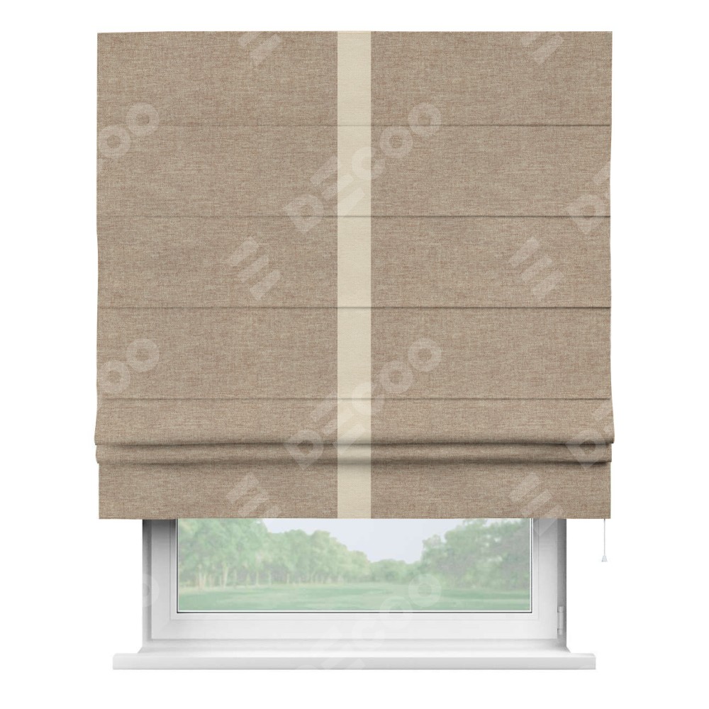 Римская штора «Кортин» с кантом Хайвэй, для проема, ткань лён кашемир коричневый