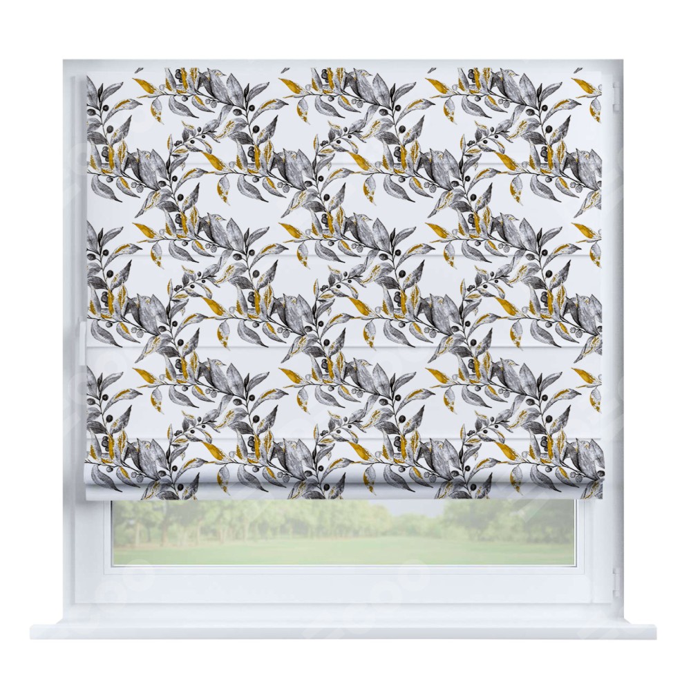 Римская штора производителя «Cortin», устанавливается на створку окна, пошита из ткани блэкаут с нанесением сублимационной печати «Оливковое дерево». Штора шьётся по индивидуальным размерам, для данного типа римской шторы возможная ширина от 35 до 150 см., высота до 250 см.