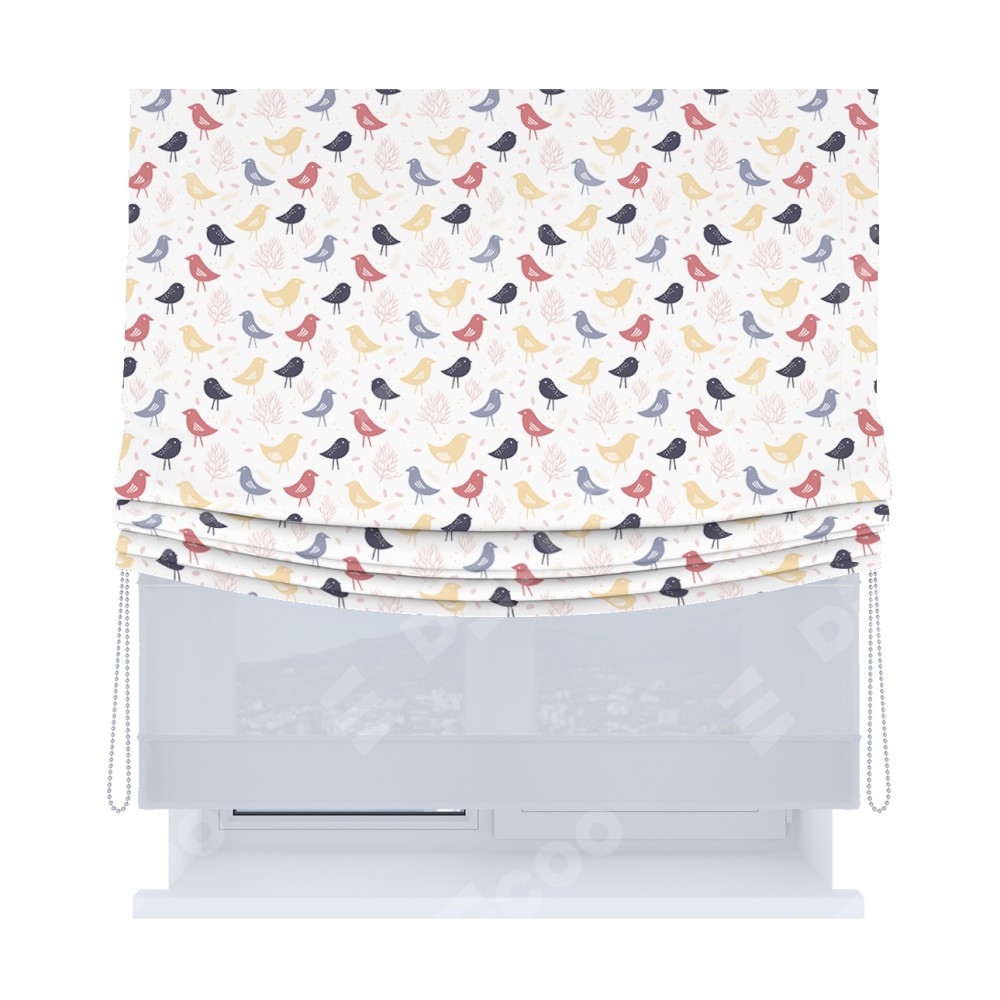 Римская штора «Кортин», день-ночь с мягкими складками, «Цветные птички»