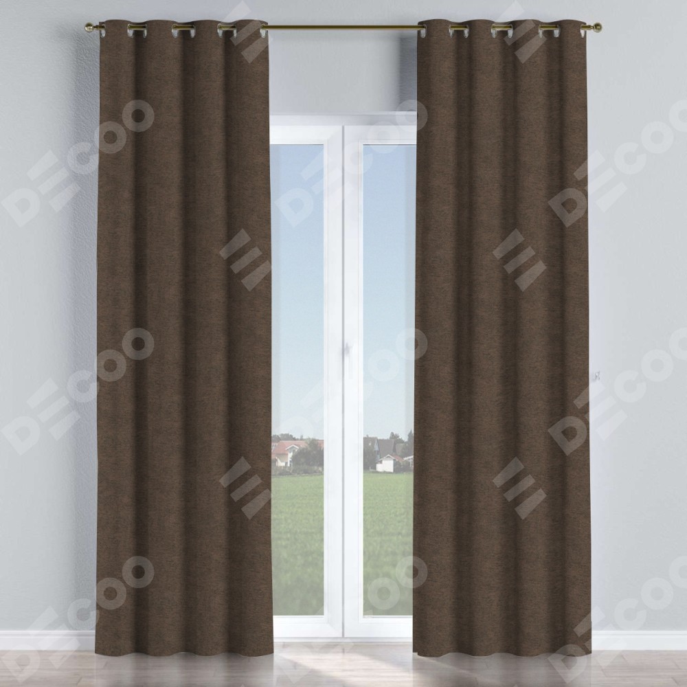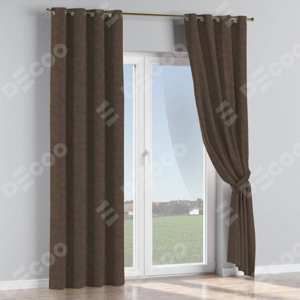 Комплект прямых штор, от производителя «Cortin», пошиты из ткани твид блэкаут тёмно-коричневый, артикул ткани 90933. Данная модель пошита на люверсах, комплектуется на выбор круглым карнизом и подходит для монтажа на стену или потолок. Прямые шторы на люверсах шьются по стандарту с коэффициентом 1/2 (на 100 см. ширины проёма 200 см. ширины ткани), отличительным преимуществом данной модели является простой способ монтажа. Достаточно повесить ее на трубу и штора готова!