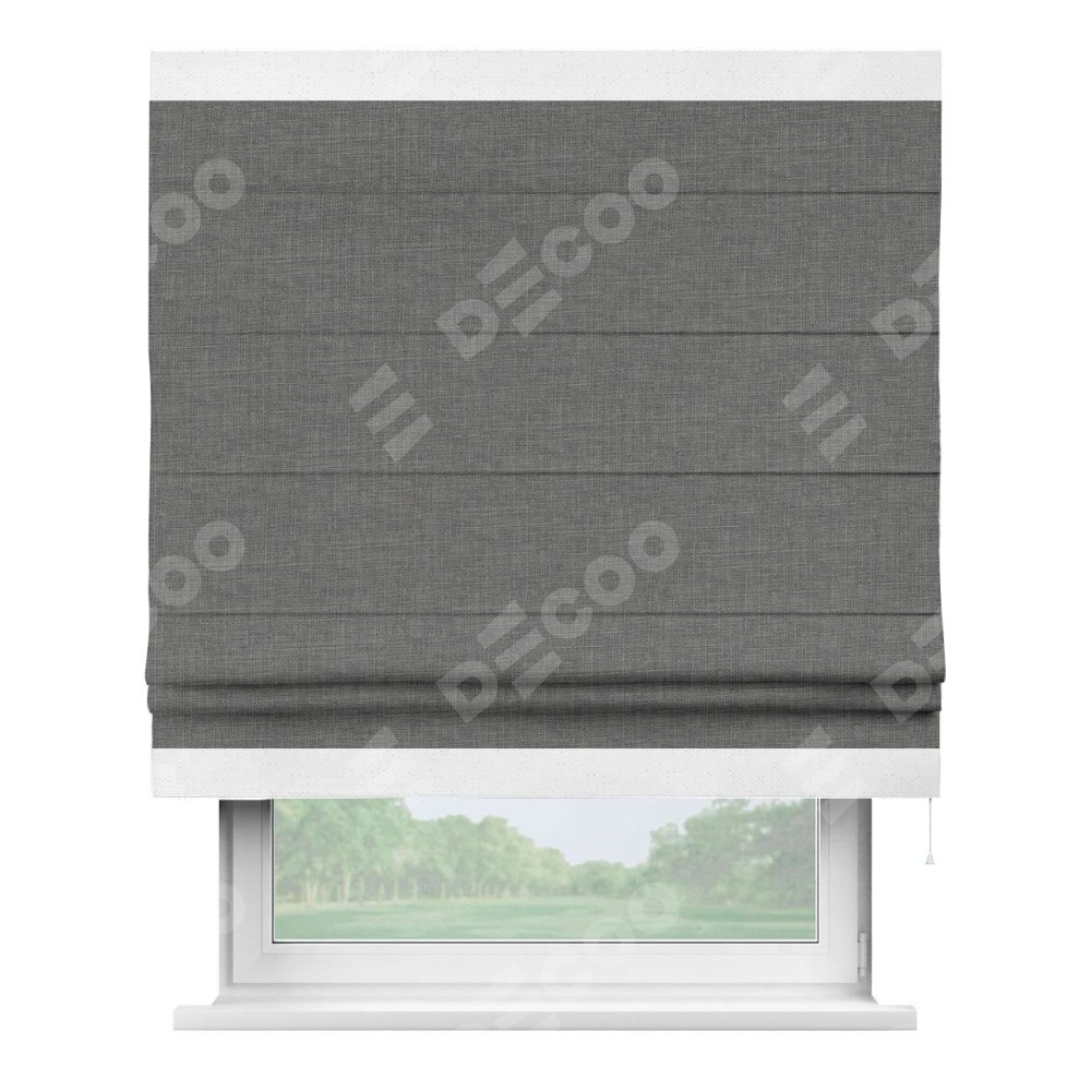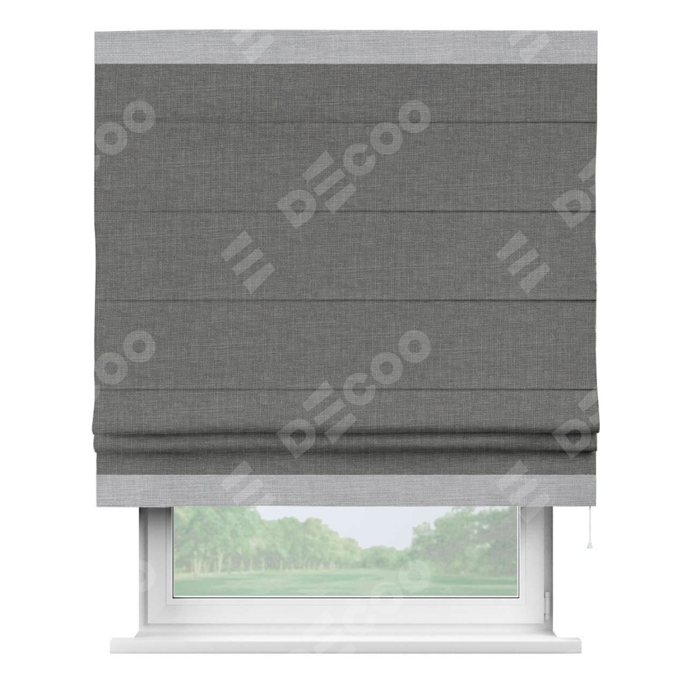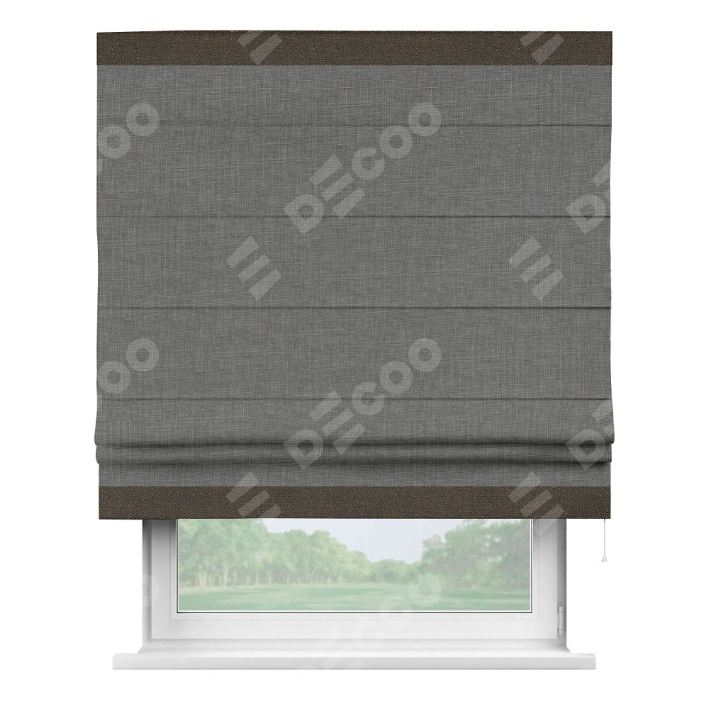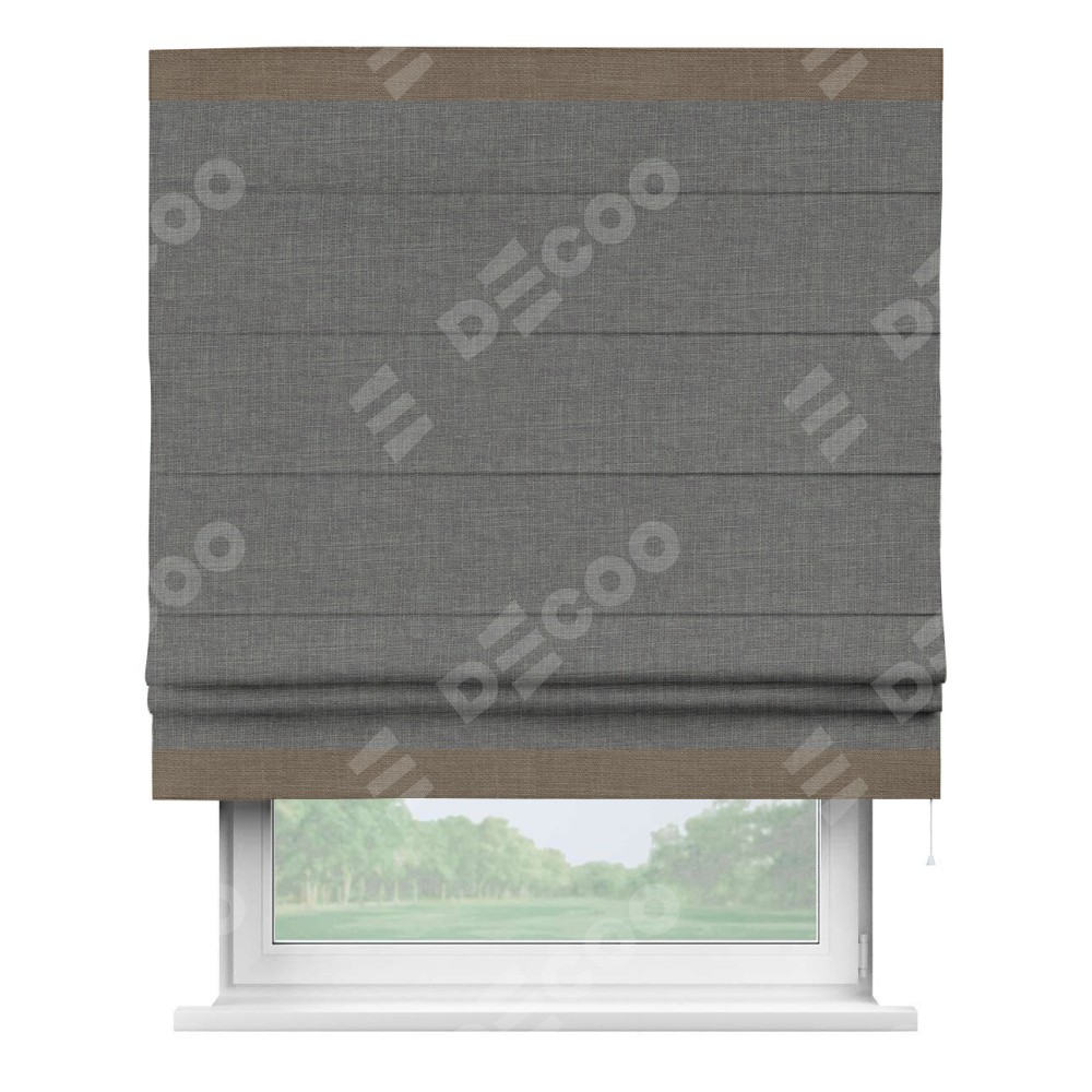 Римская штора «Кортин» с кантом Горизонт, для проема, лён тёмно-серый