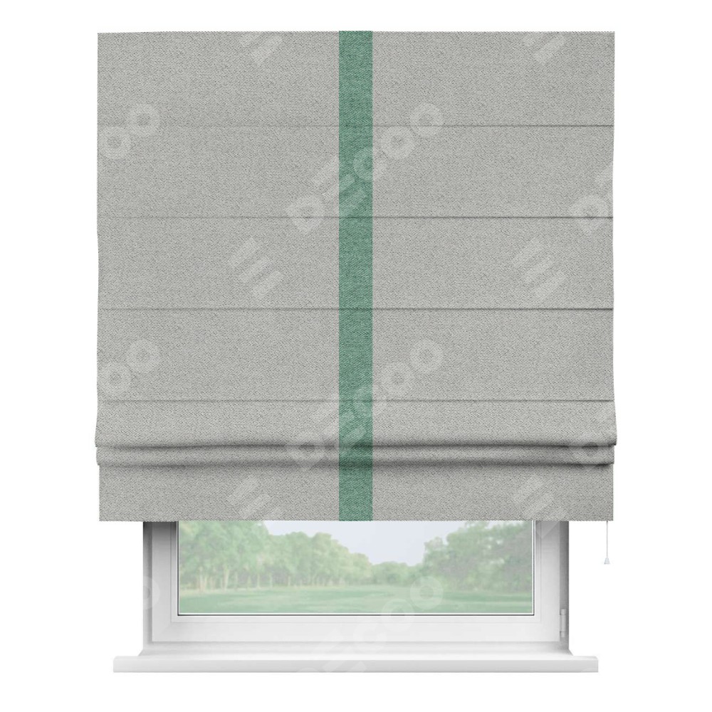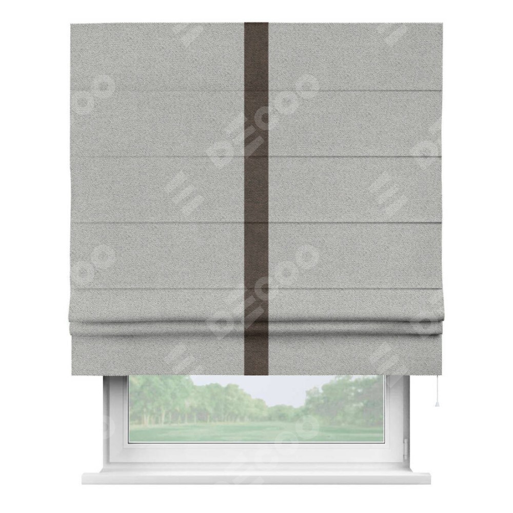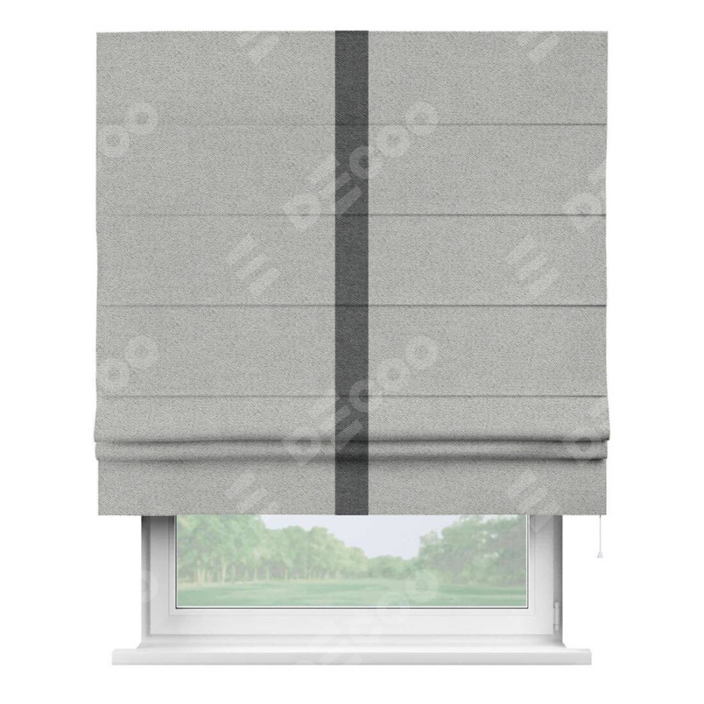 Римская штора «Кортин» для проема, твид блэкаут светло-серый, с кантом Хайвэй
