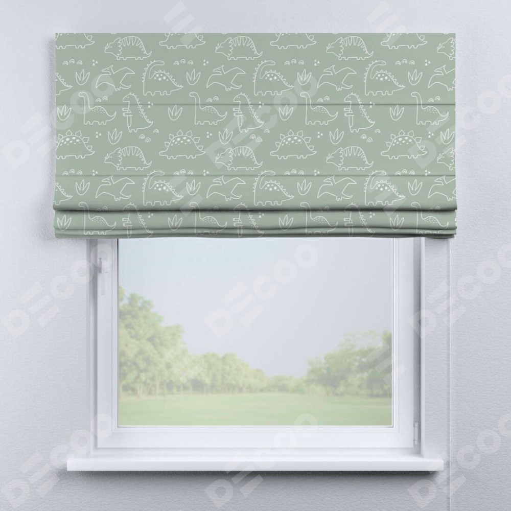 Римская штора «Кортин» для проема «Динопарк» отлично подойдёт для интерьера: в детскую.