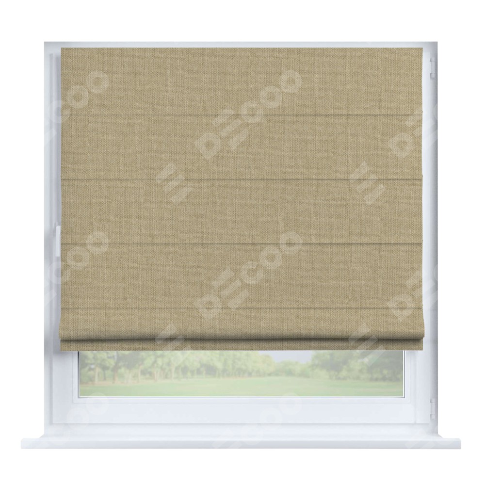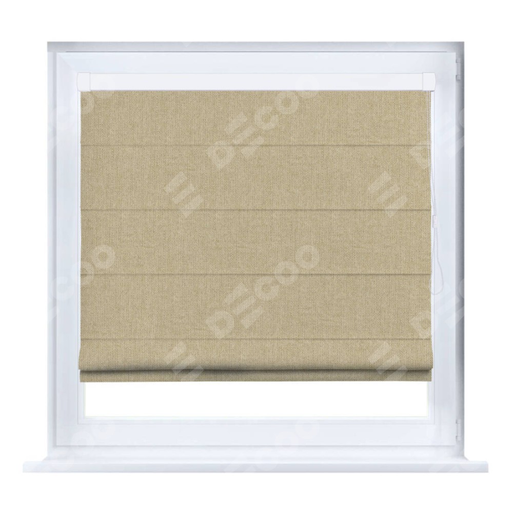 Римская штора производителя «Cortin», устанавливается на створку окна, пошита из ткани лён димаут песочный, артикул 16256. Штора шьётся по индивидуальным размерам, для данного типа римской шторы возможная ширина от 35 до 150 см., высота до 250 см.