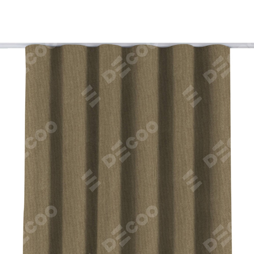 Комплект прямых штор, от производителя «Cortin», пошиты из ткани лён димаут тёмно-бежевый, артикул ткани 16261. С изнаночной стороны в верхней части штор пристрачивается шторная лента с декоративными складками «Волна». Для создания элегантных складок прямые шторы шьются по стандарту с коэффициентом 1:2 (на 100 см. ширины проёма 200 см. ширины ткани).