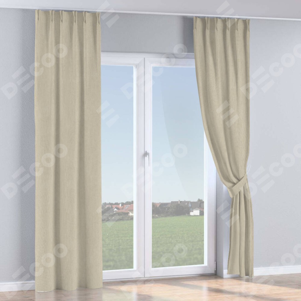 Комплект прямых штор, от производителя «Cortin», пошиты из ткани cotton блэкаут светло-бежевый, артикул ткани 71119. С изнаночной стороны в верхней части штор пристрачивается шторная лента с декоративными складками «Кустик». Для создания элегантных складок прямые шторы шьются по стандарту с коэффициентом 1:2 (на 100 см. ширины проёма 200 см. ширины ткани).