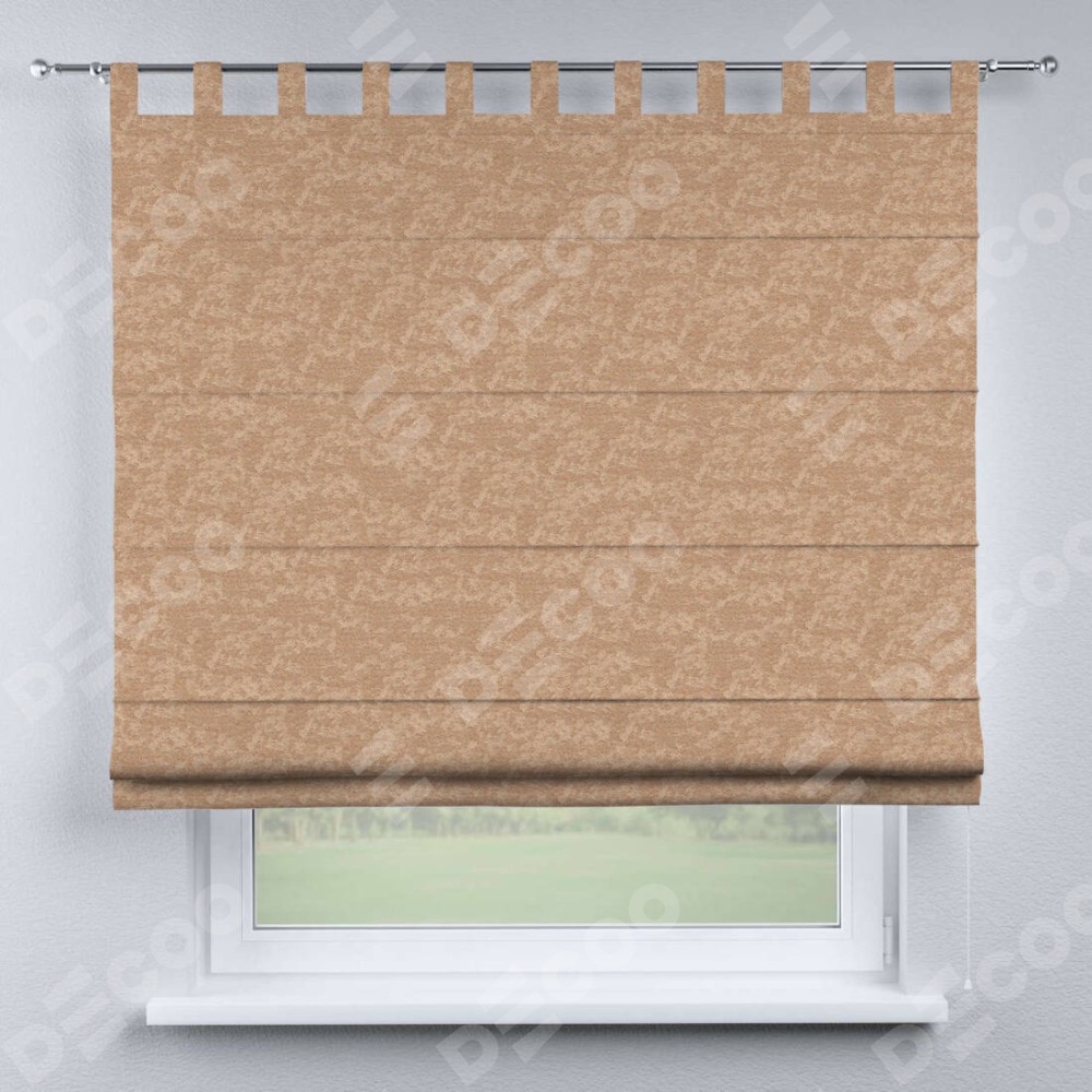 Римская штора производителя «Cortin», используется для проёма, пошита из ткани софт мрамор бронзовый, артикул ткани 93576. Данная модель пошита на петлях, комплектуется на выбор круглым карнизом и подходит для монтажа на стену. Римская штора на петлях имеет простую систему регулировки высоты, отличительным преимуществом данной модели является простой способ монтажа. Достаточно повесить ее на трубу и штора готова!