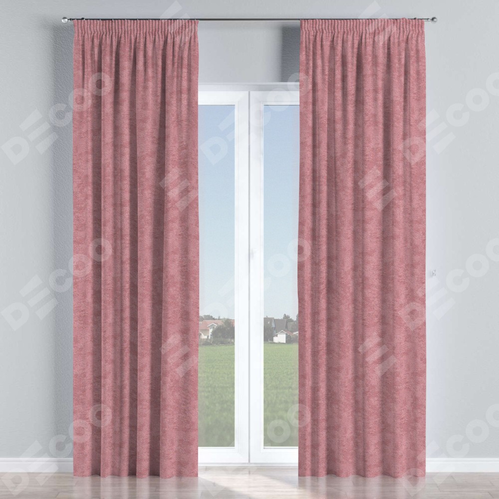 Комплект прямых штор, от производителя «Cortin», пошиты из ткани софт мрамор розовый, артикул ткани 93584. С изнаночной стороны в верхней части штор пристрачивается шторная лента с декоративными складками «Карандаш». Для создания элегантных складок прямые шторы шьются по стандарту с коэффициентом 1:2 (на 100 см. ширины проёма 200 см. ширины ткани).