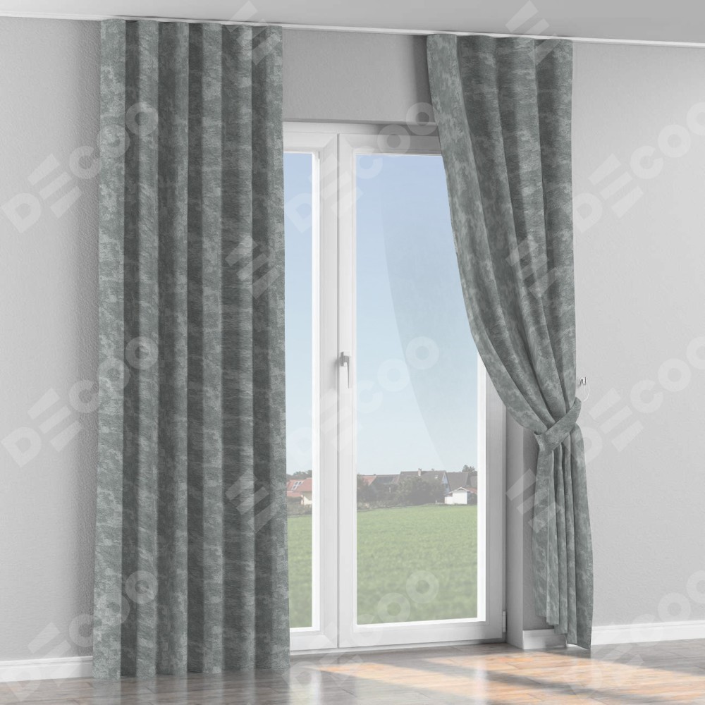 Комплект прямых штор, от производителя «Cortin», пошиты из ткани софт мрамор серый, артикул ткани 93583. С изнаночной стороны в верхней части штор пристрачивается шторная лента с декоративными складками «Волна». Для создания элегантных складок прямые шторы шьются по стандарту с коэффициентом 1:2 (на 100 см. ширины проёма 200 см. ширины ткани).