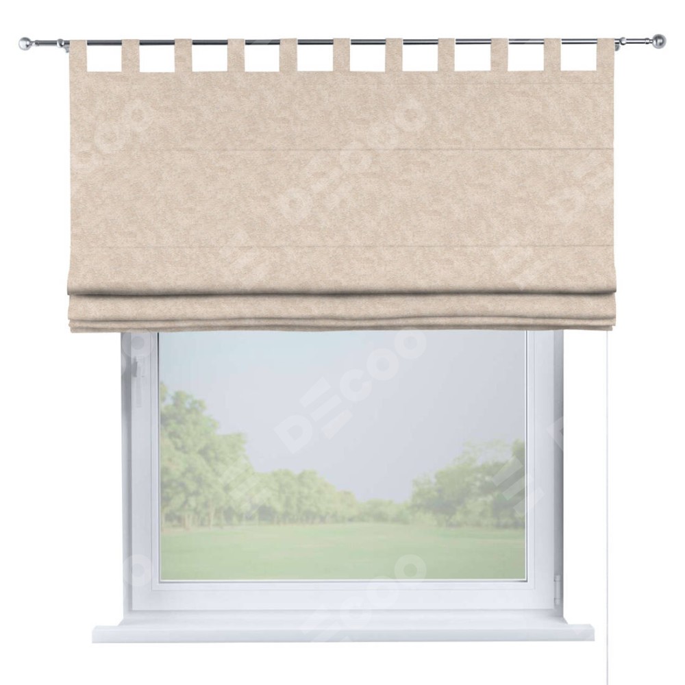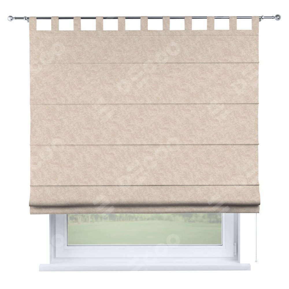 Римская штора производителя «Cortin», используется для проёма, пошита из ткани софт мрамор шампань, артикул ткани 93575. Данная модель пошита на петлях, комплектуется на выбор круглым карнизом и подходит для монтажа на стену. Римская штора на петлях имеет простую систему регулировки высоты, отличительным преимуществом данной модели является простой способ монтажа. Достаточно повесить ее на трубу и штора готова!